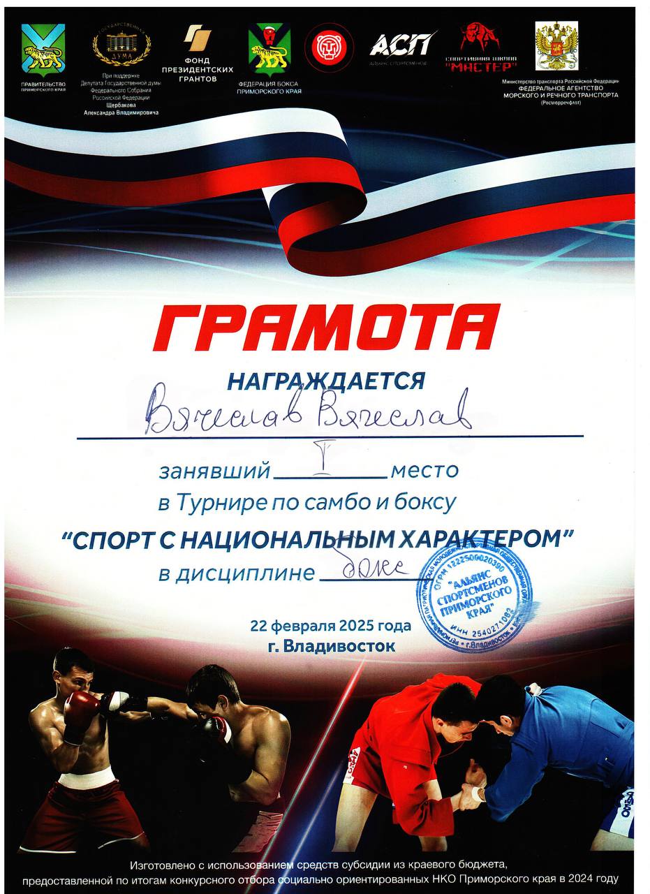 Турнир по самбо и боксу «Спорт с национальным характером» | Региональный | 23.02.2025 | 1 место или гран-при |