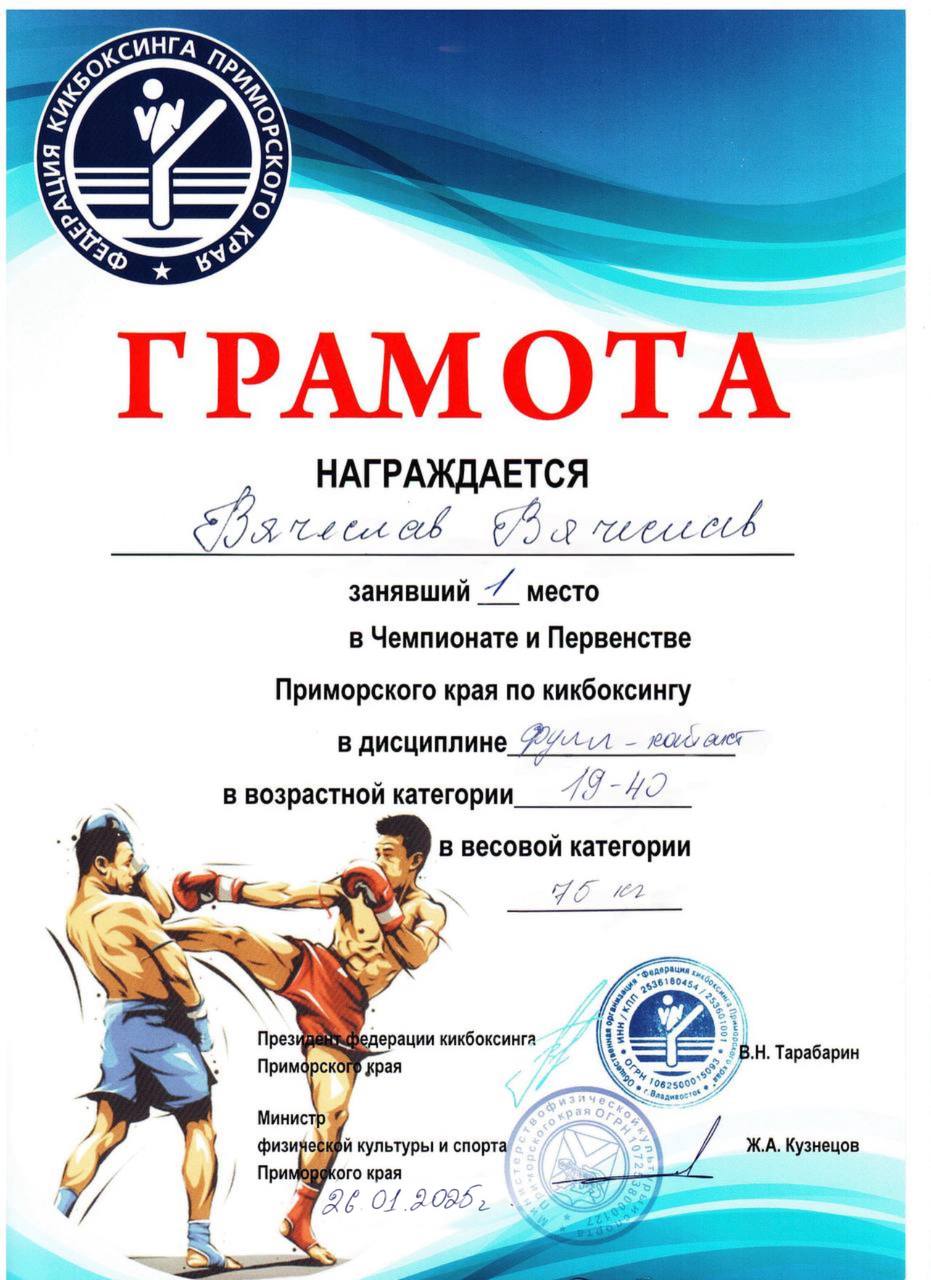 Чемпионат и первенство Приморского края по кикбоксингу | Городской, краевой | 26.01.2025 | 1 место или гран-при |