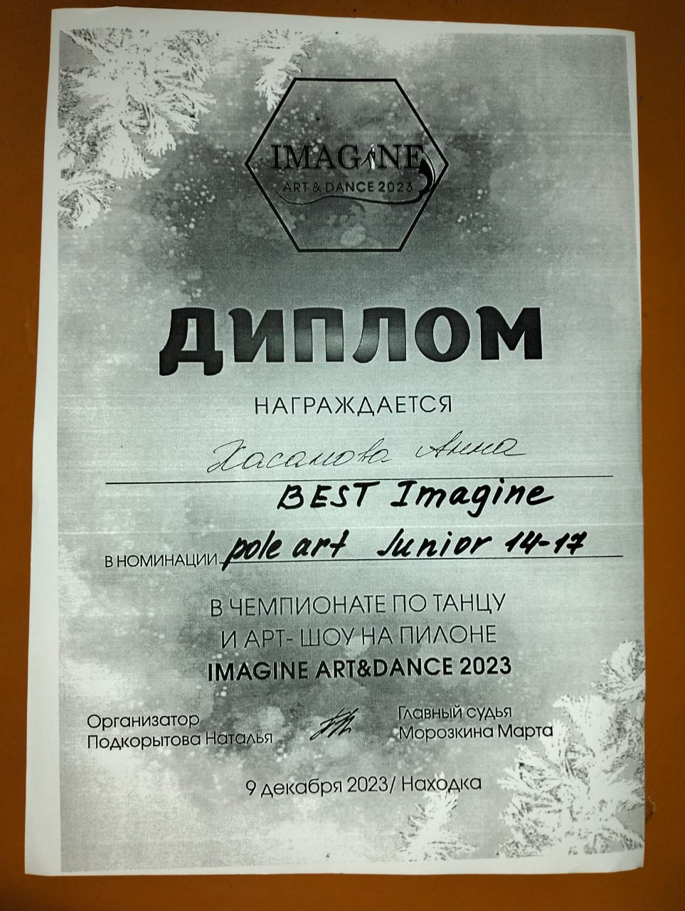 Чемпионат по танцу и ART шоу на пилоне IMADGINE ART&DANCE 2023 | Городской, краевой | 09.12.2023 | 3 место |
