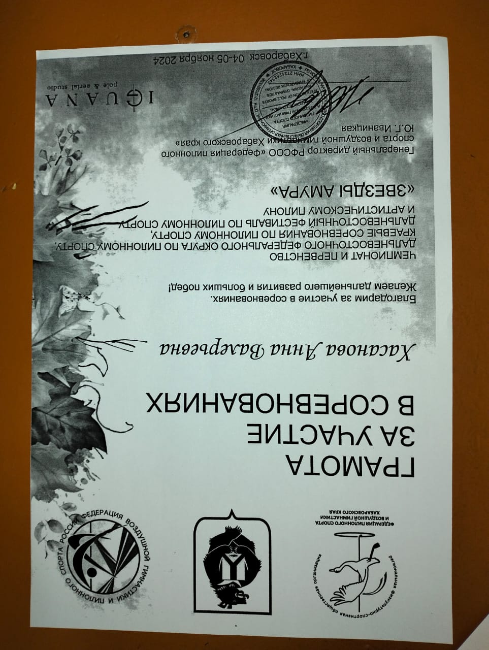 Дальневосточный фестиваль по пилонному спорту и артистик фестиваль "Звезды Амура " | Городской, краевой | 04.11.2024 - 05.11.2024 | 2 место |