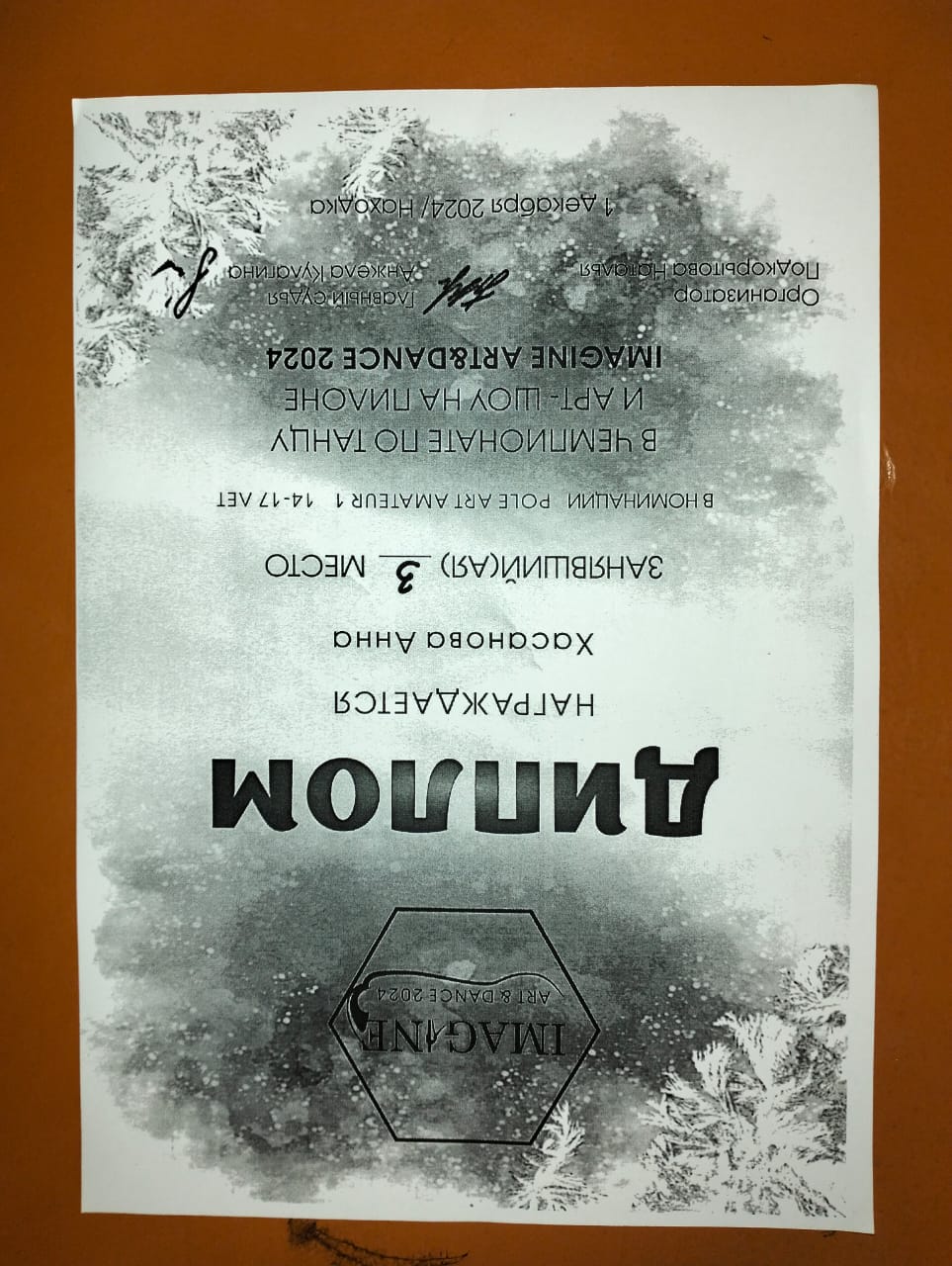 Чемпионат потанцу и ART- шоу на пилоне IMADGINE ART&DANCE 2024 | Городской, краевой | 01.12.2024 | 3 место |