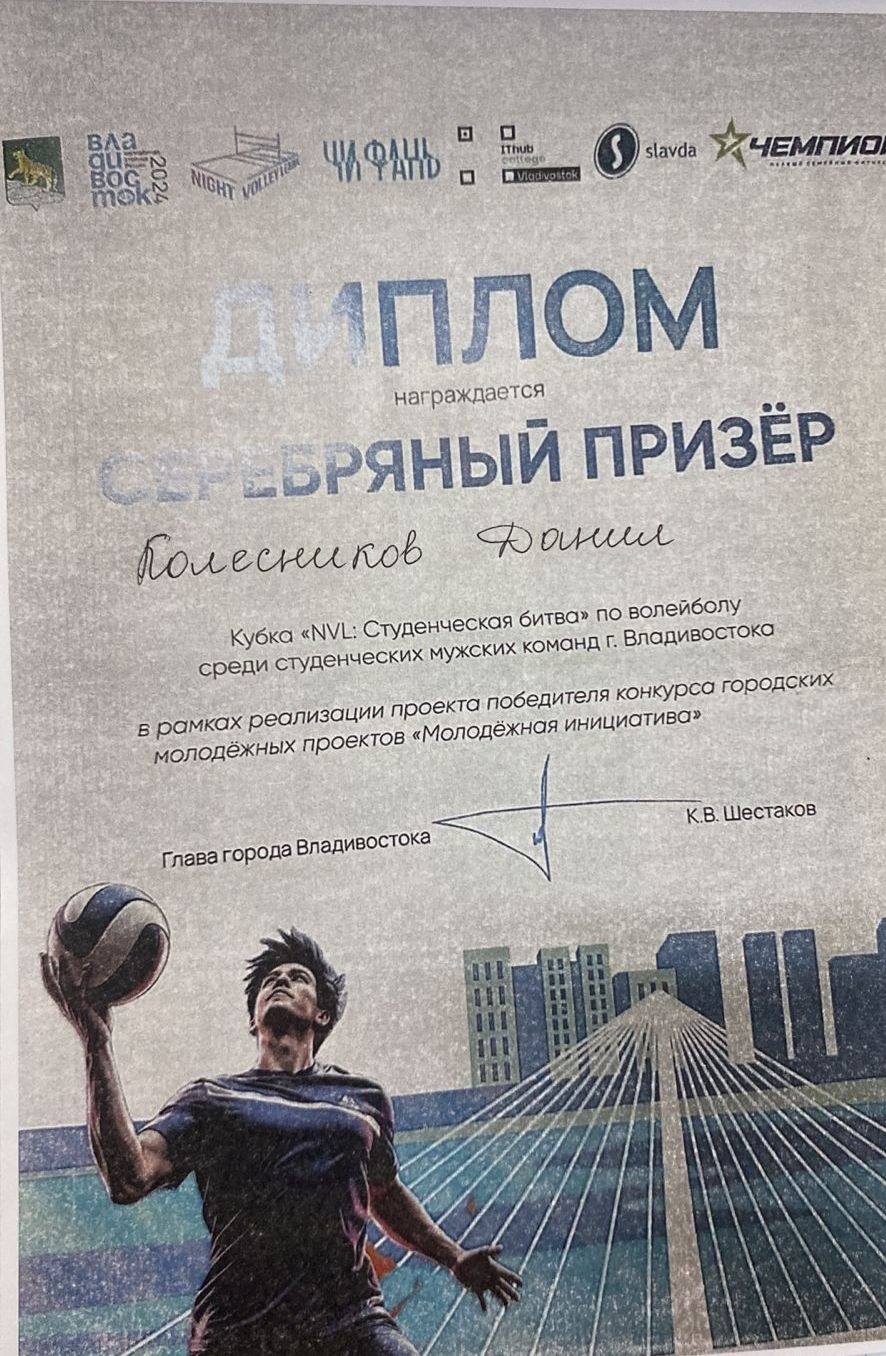"Студенческая битва" по волейболу среди студенческих команд г. Владивосток | соревнования по волейболу | Городской, краевой | 11.11.2024 - 28.11.2024 | 2 место |