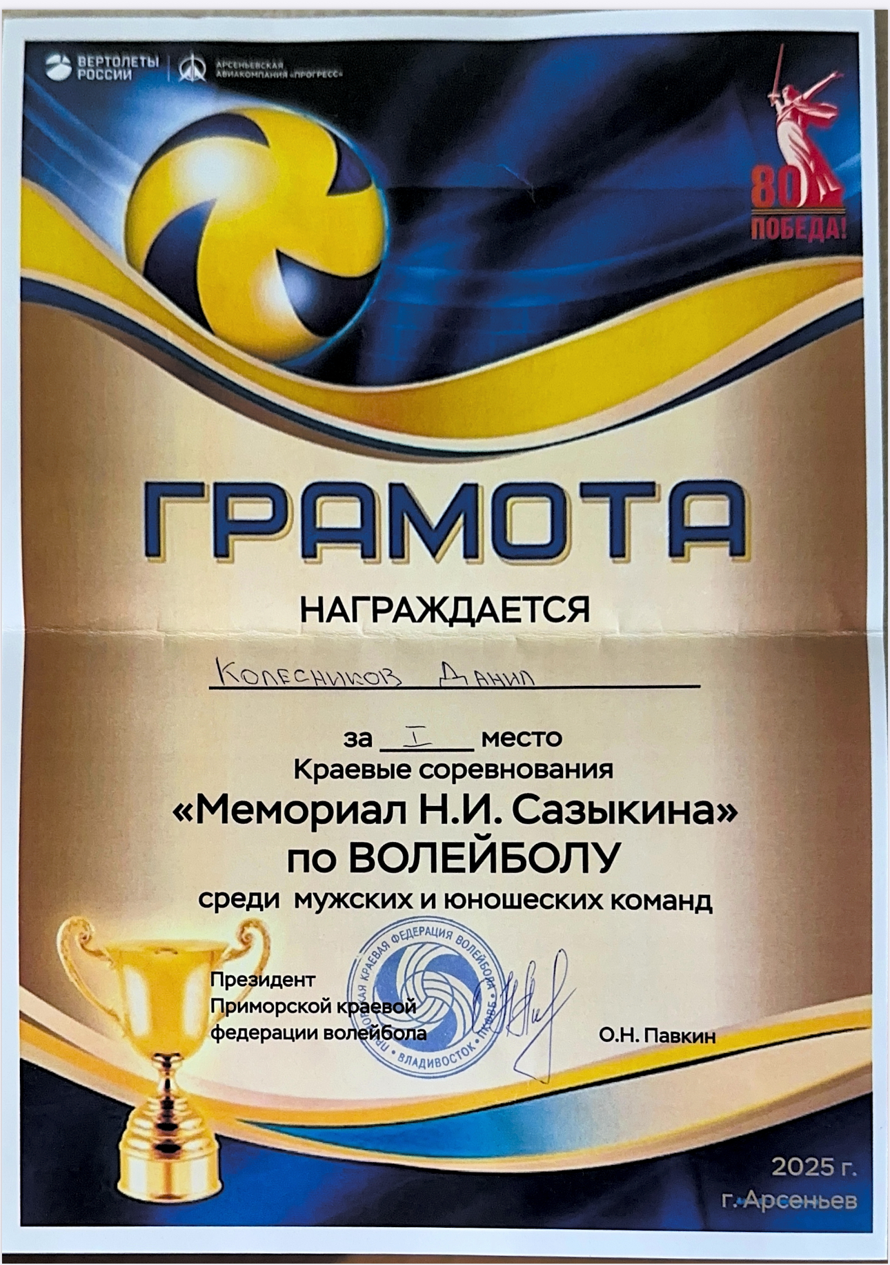 Турнир г. Владивостока по волейболу, посвященного памяти Г.В. Арского среди мужских команд | турнир по волейболу | Городской, краевой | 21.10.2024 - 17.11.2024 | 2 место |