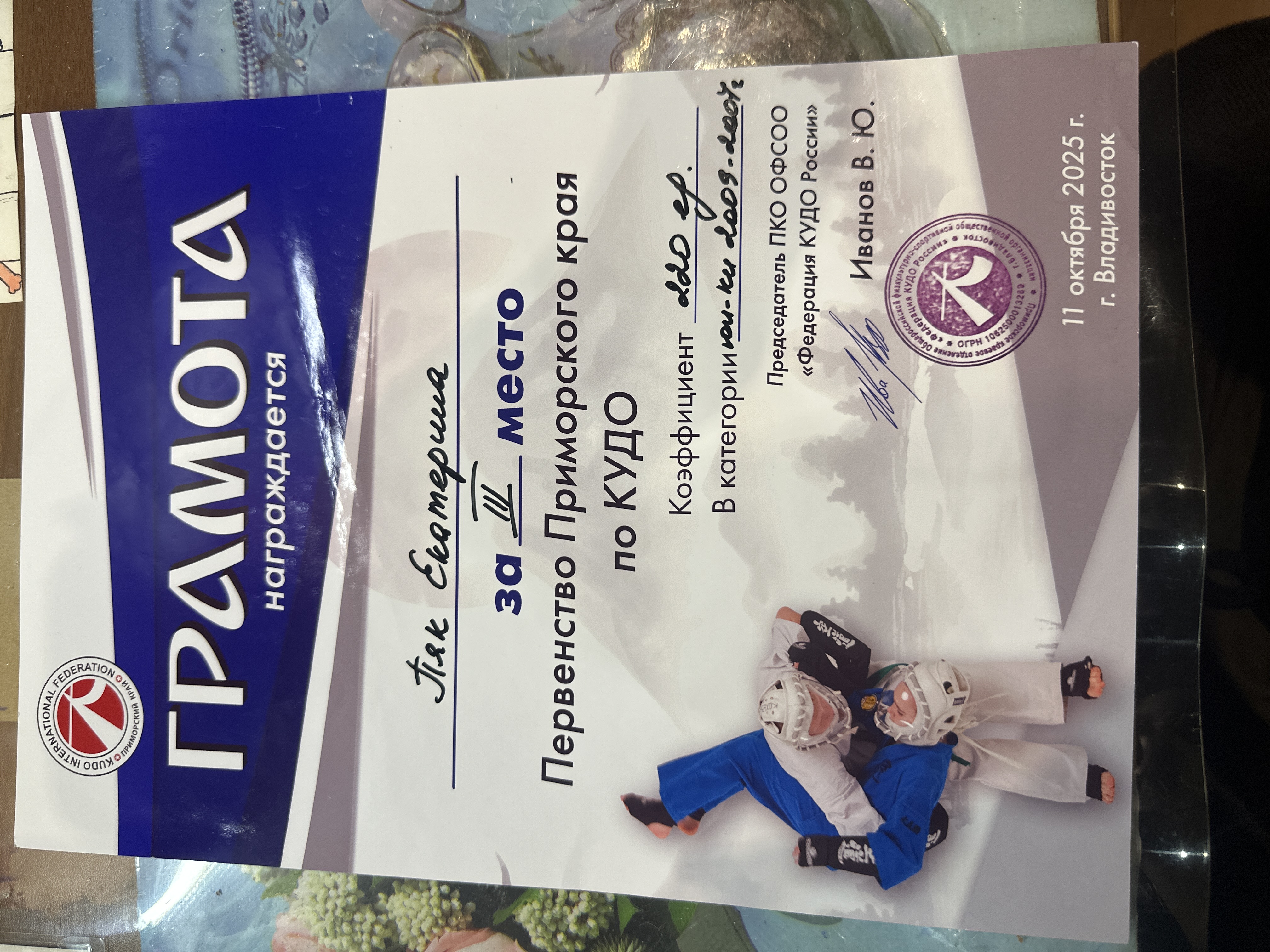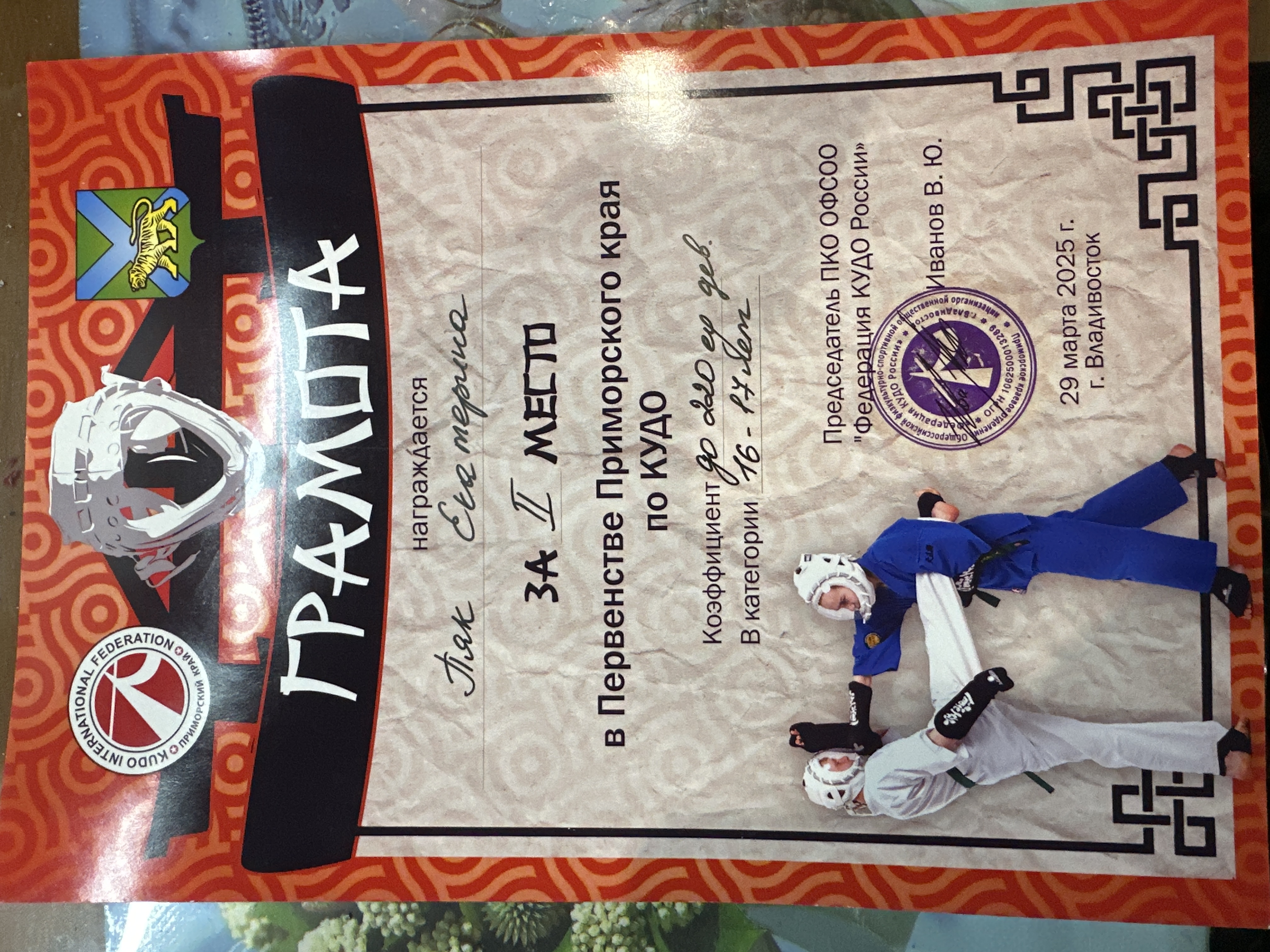 | Первенство Приморского края по КУДО | Региональный | 11.10.2025 | 3 место |