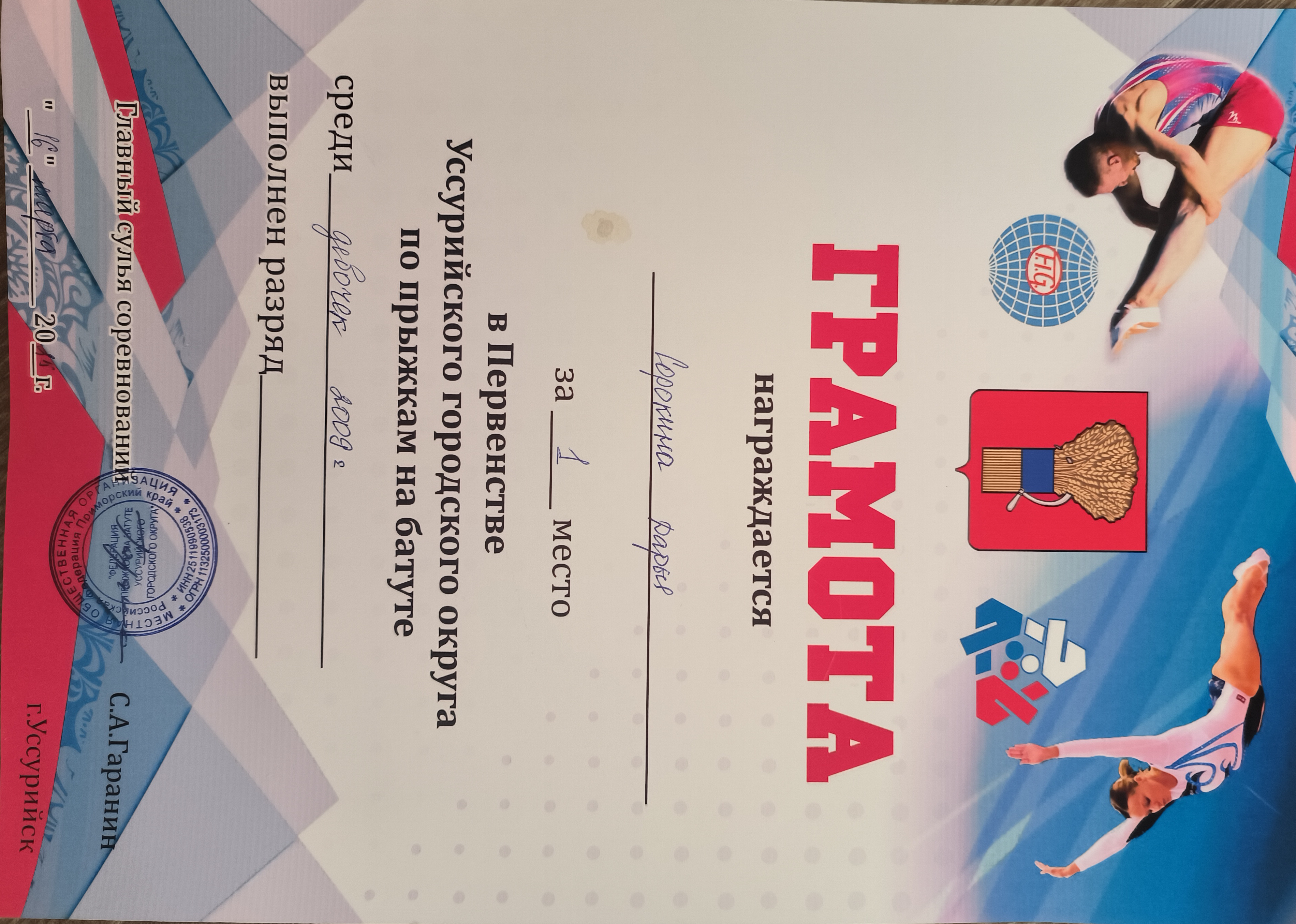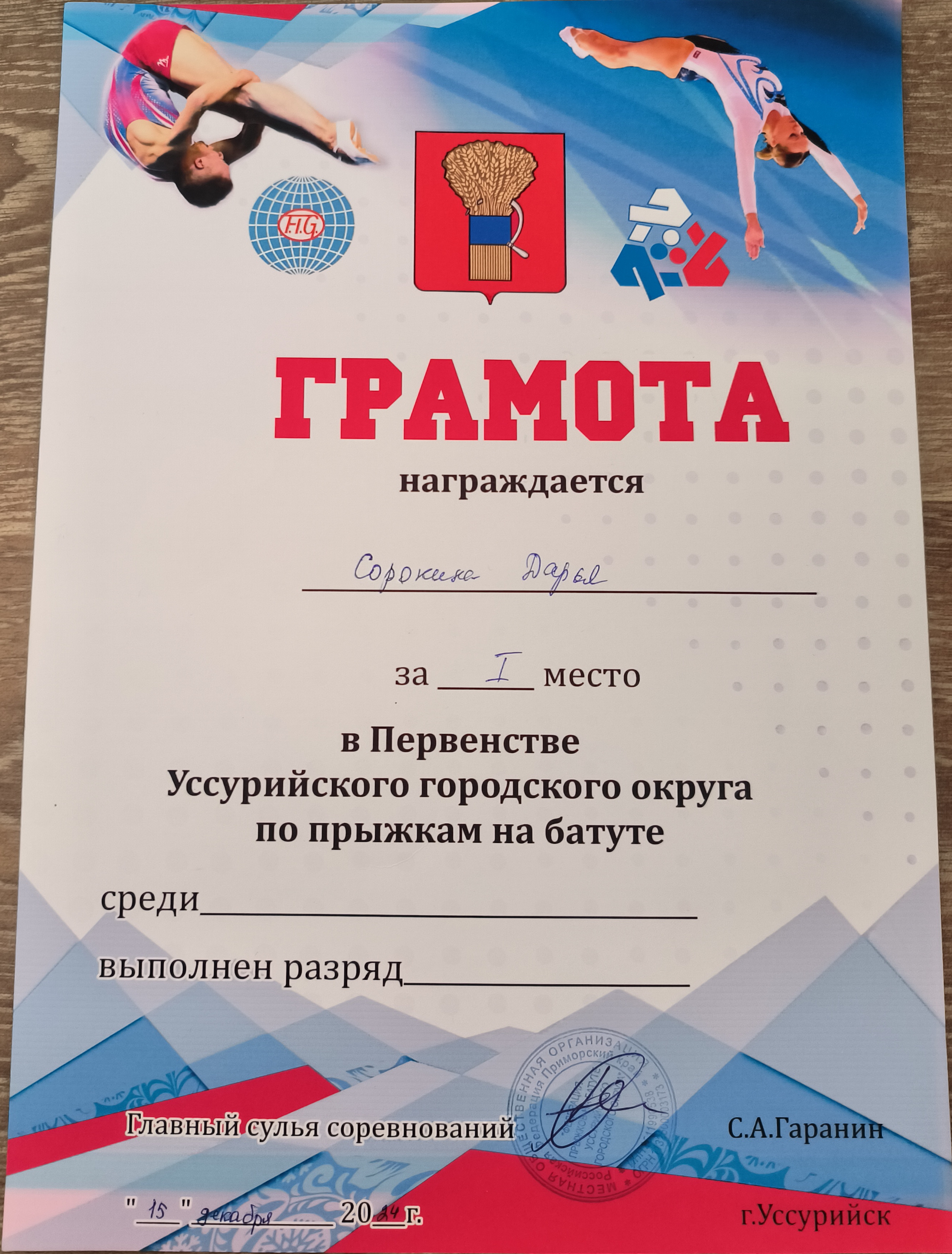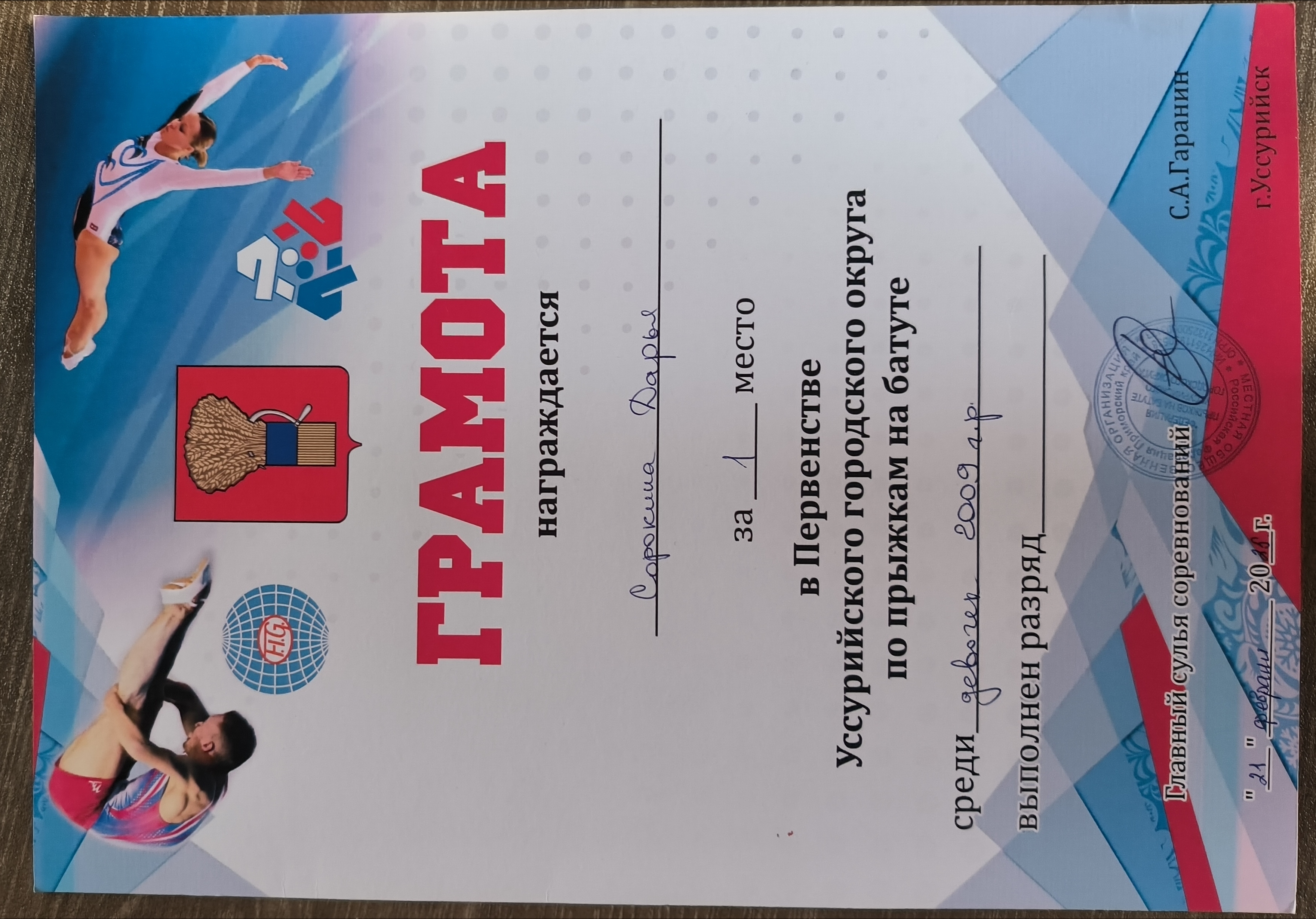 Первенство Уссурийского городского округа по прыжкам на батуте | Городской, краевой | 16.03.2025 | 1 место или гран-при |