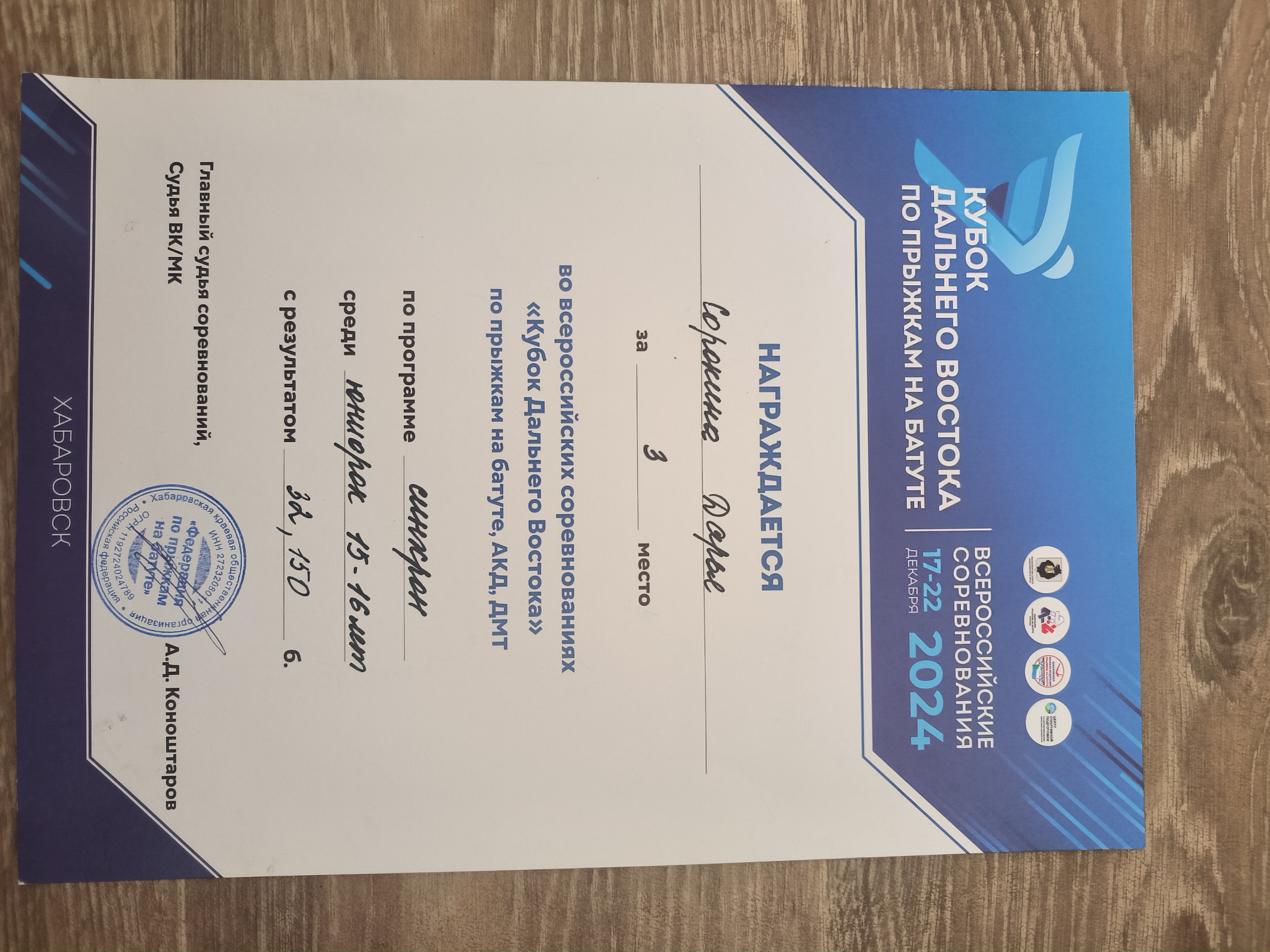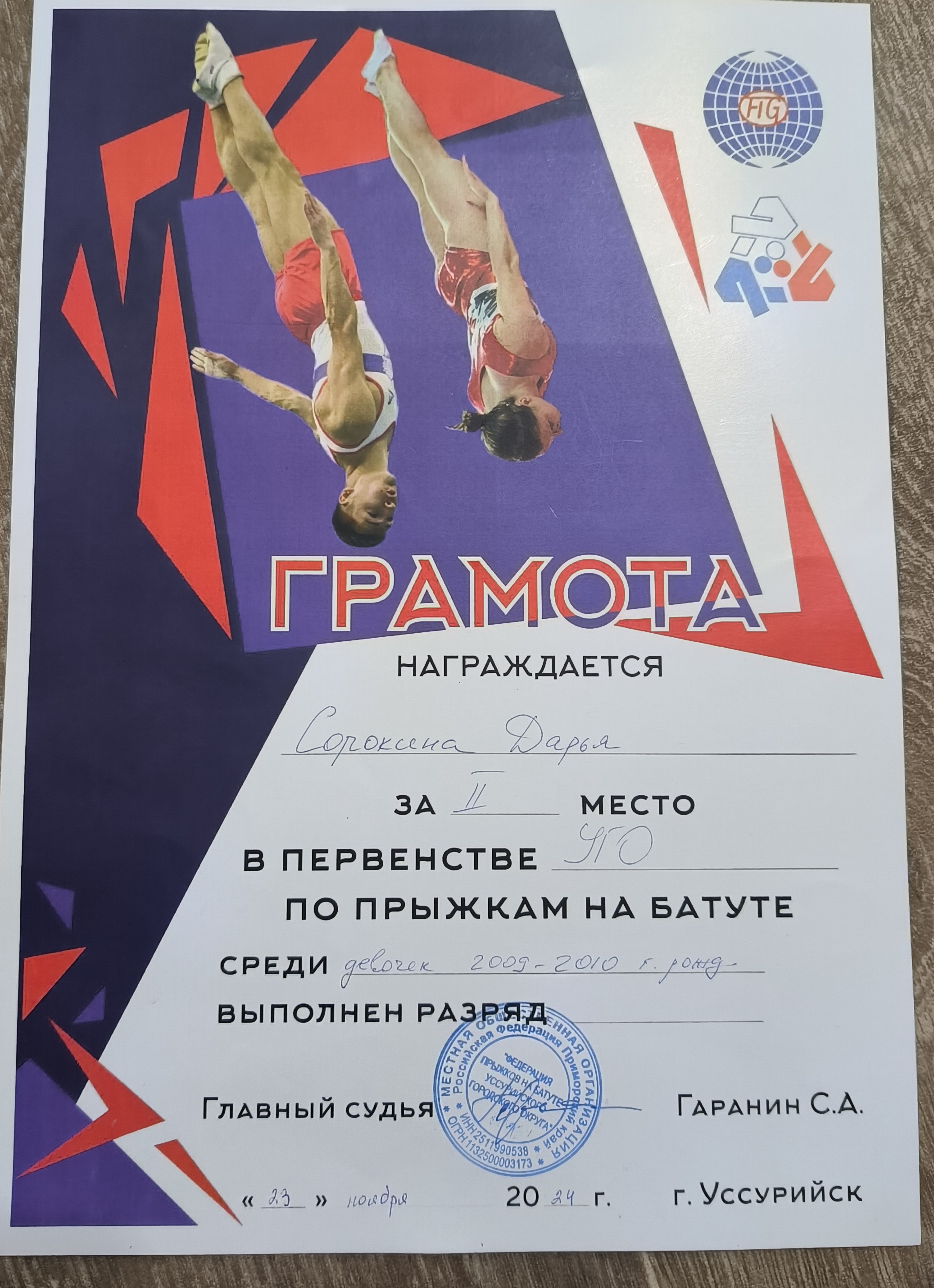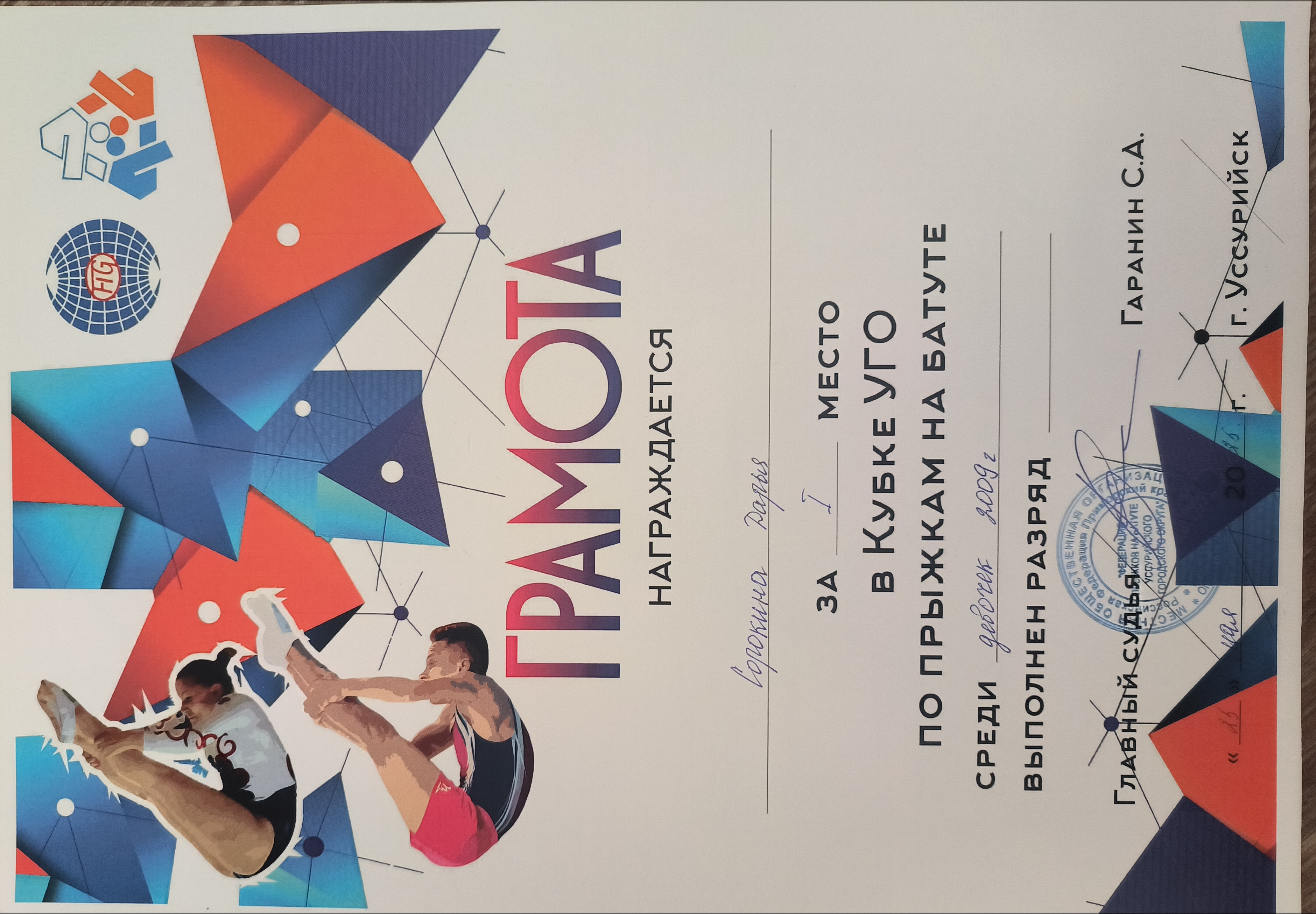 Первенство Уссурийского городского округа по прыжкам на батуте | Городской, краевой | 16.03.2025 | 1 место или гран-при |