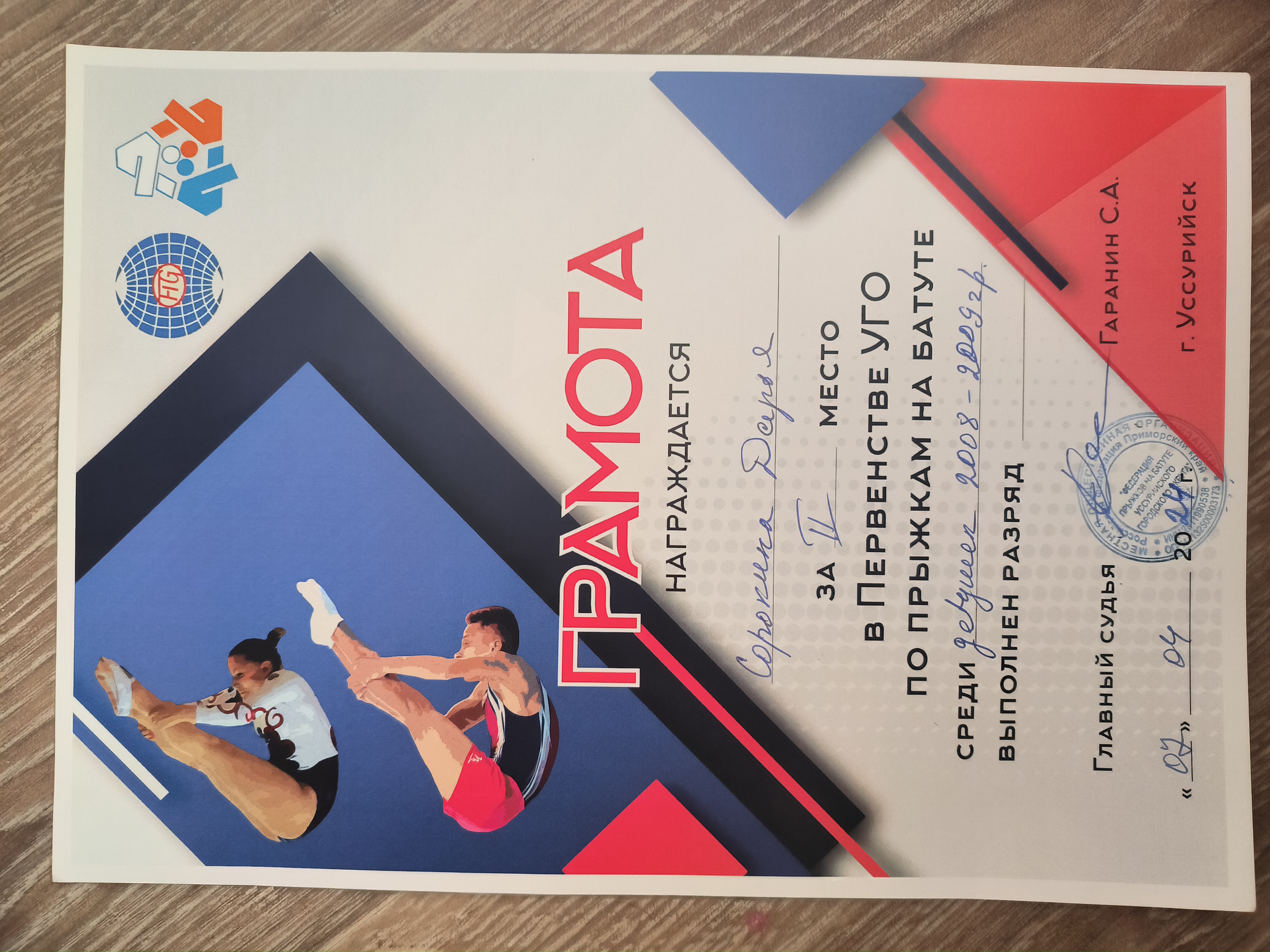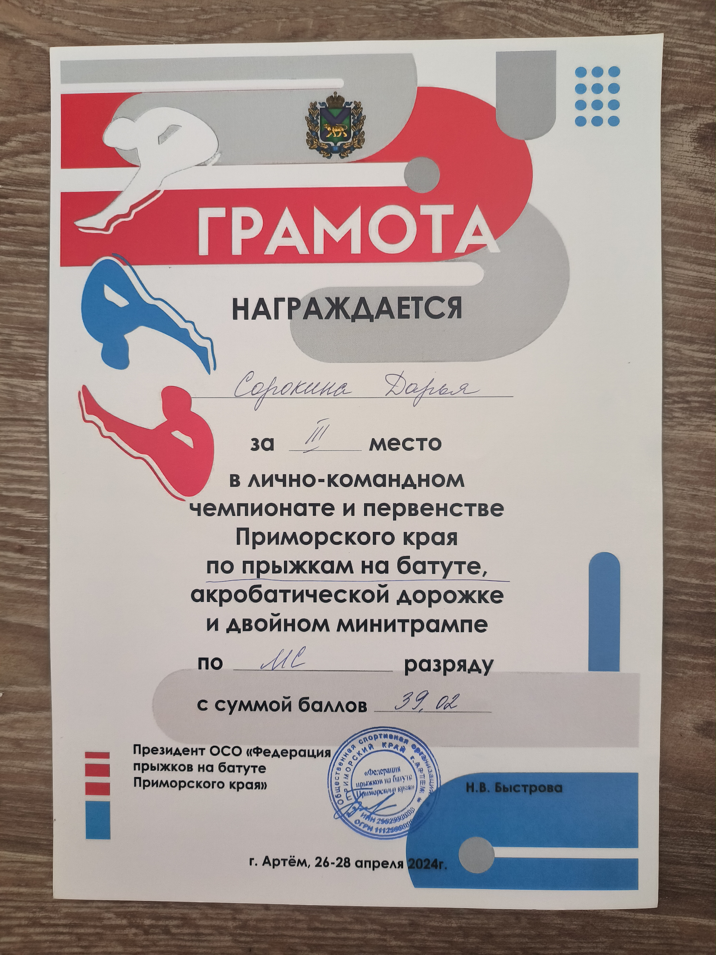 Лично-командный чемпионат и первенство Приморского края по прыжкам на батуте | Городской, краевой | 26.04.2024 - 28.04.2024 | 3 место |