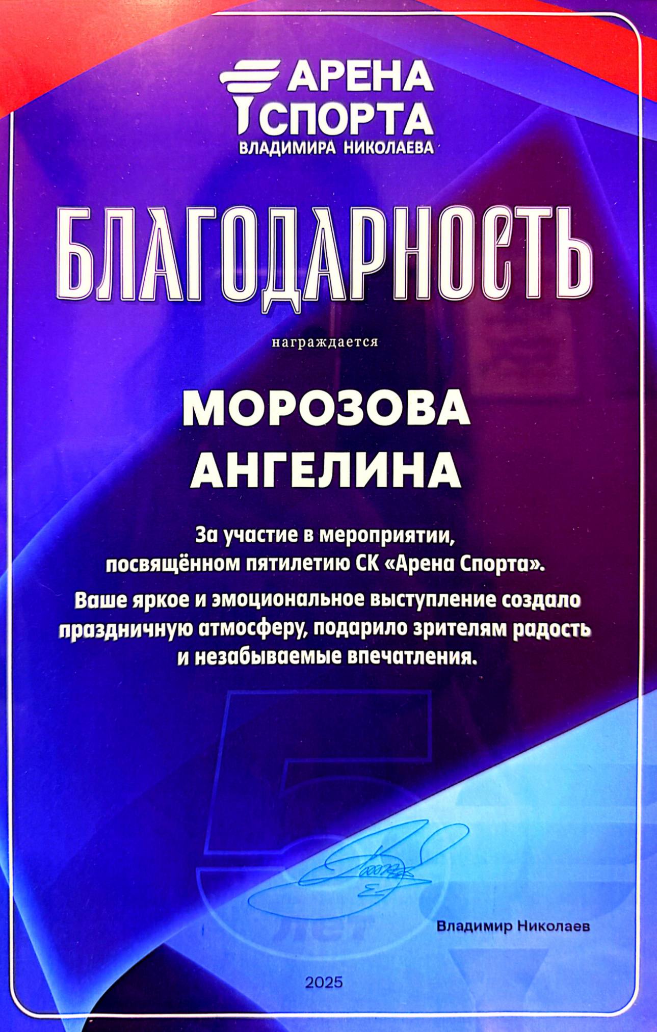 | пятилетие СК "Арена Спорта" | Чирлидинг | Городской, краевой | 10.10.2025 | Участник |