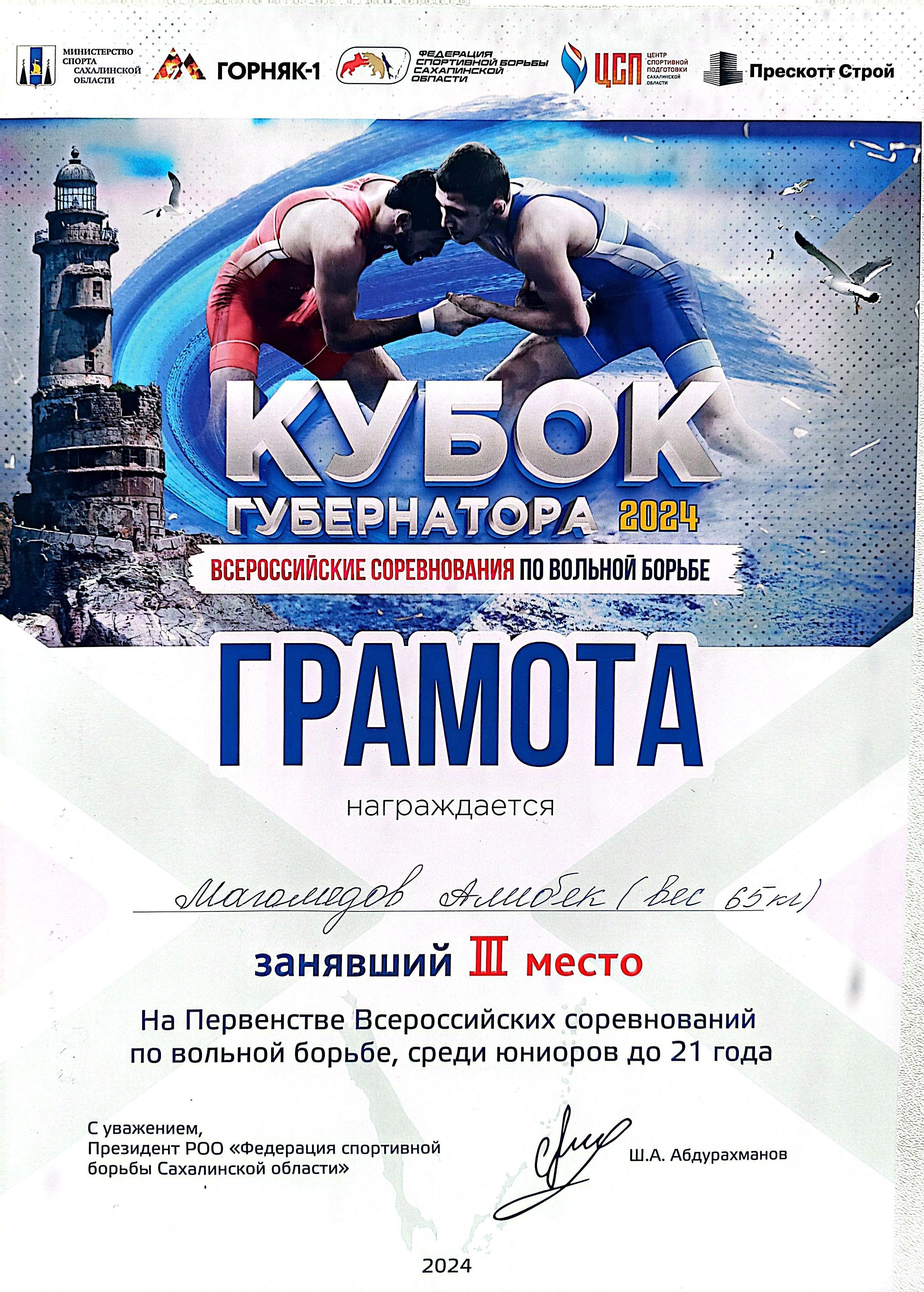 Кубок губернатора 2024 | Соревновательный | Всероссийский | 30.08.2024 - 31.08.2024 | Победитель или призер |