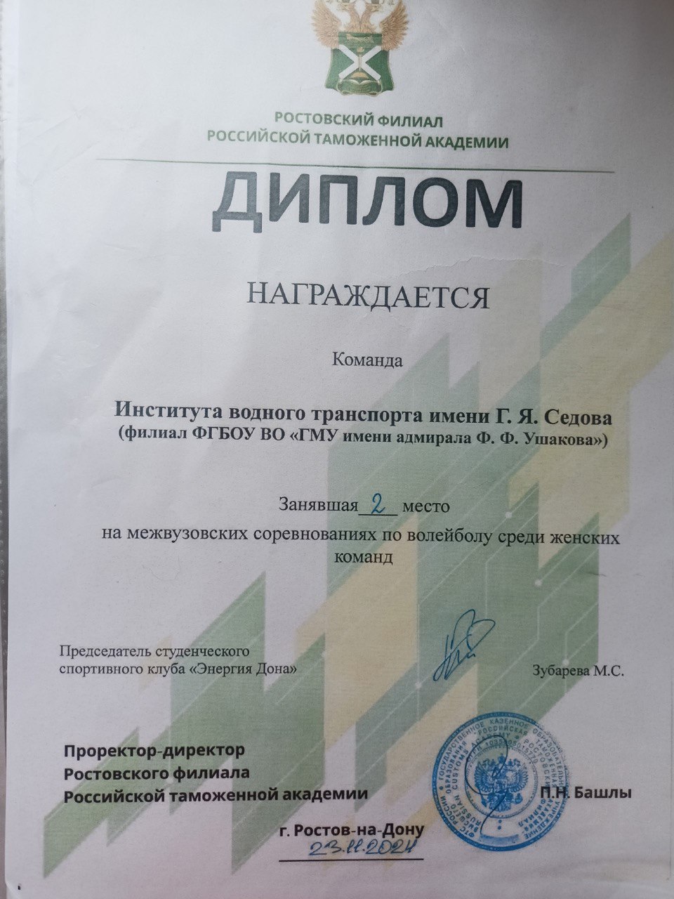 | Межвузовские соревнования по волейболу | Городской, краевой | 23.11.2024 | 2 место |
