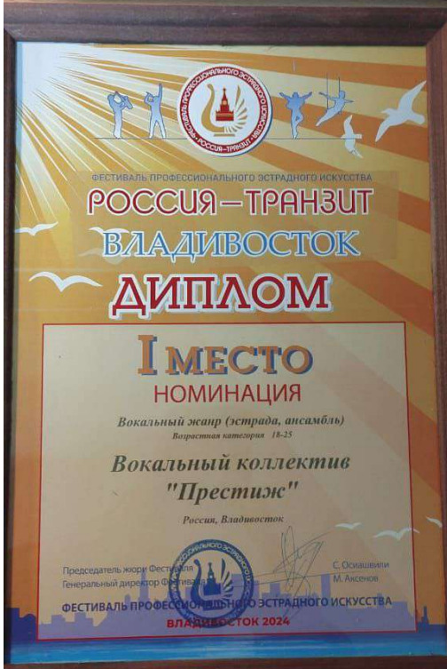 Фестиваль профессионального эстрадного искусства "РОССИЯ - ТРАНЗИТ" | Конкурс | Всероссийский | 14.04.2024 - 14.04.2024 | 1 место или гран-при |