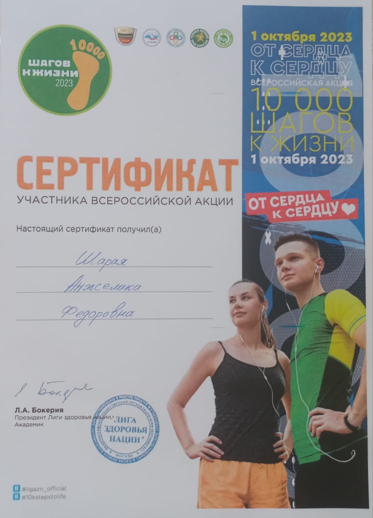 10000 шагов к жизни | всероссийский | Всероссийский | 01.10.2023 | Участник |