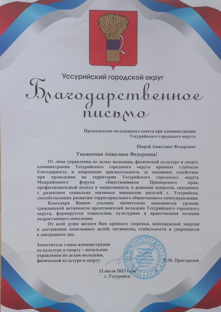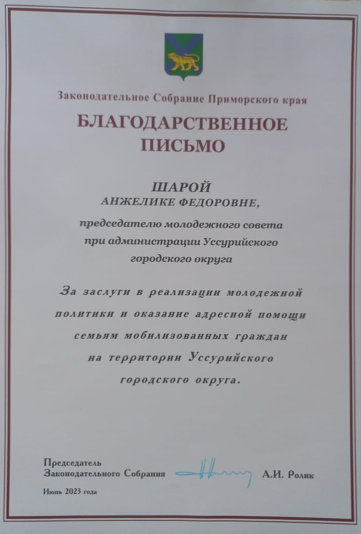 благодарственное письмо | Региональный | Региональный | 24.06.2023 | Участник |