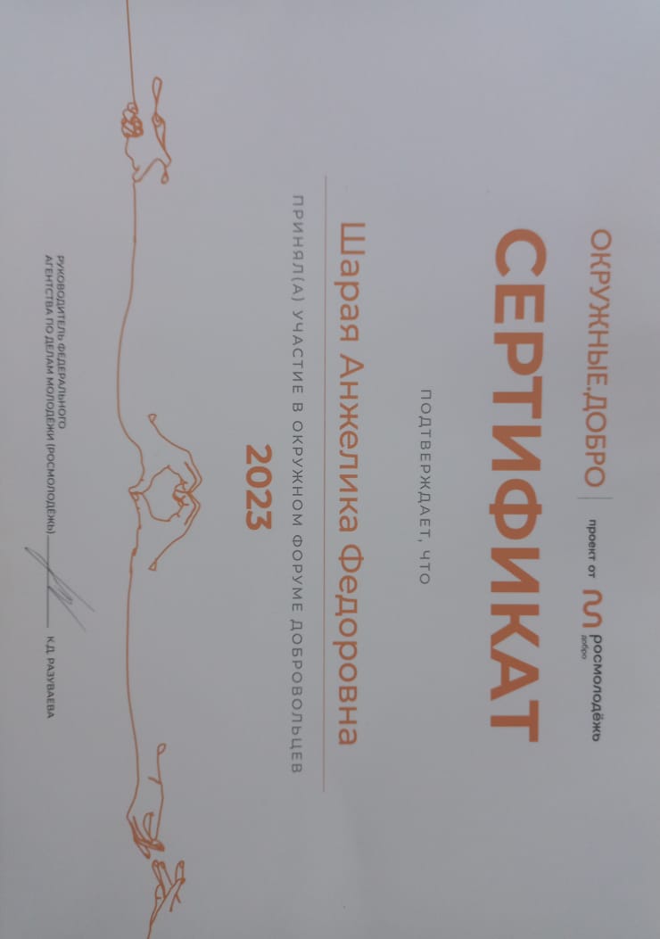 окружной форум добровольцев | Всероссийский | Всероссийский | 19.10.2023 - 22.10.2023 | Участник |