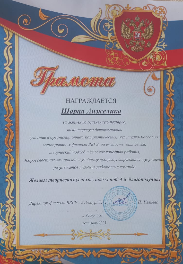 за активную деятельность в вузе | внутривузовский | Внутривузовский | 01.09.2023 | Участник |