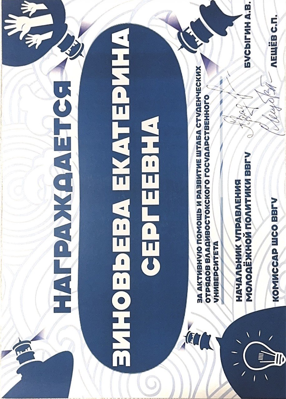 | Внутривузовское мероприятие Штаба студенческих отрядов ВВГУ «Мозгобойня» | Внутривузовский | 14.10.2025 - 14.10.2025 | Участник |