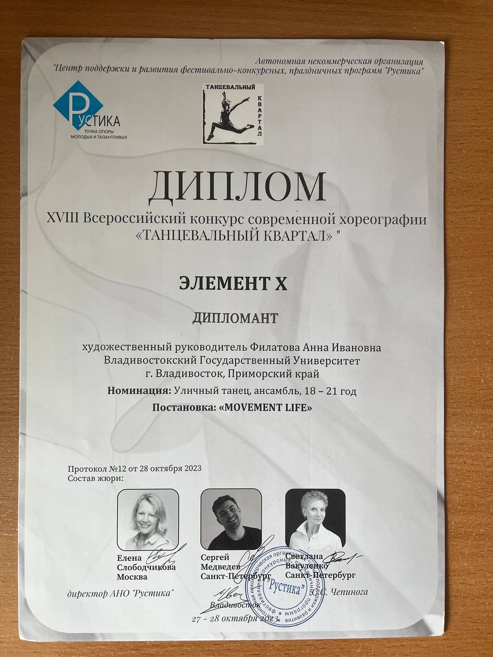 Танцевальный квартал | конкурс | Всероссийский | 28.10.2023 | Участник |