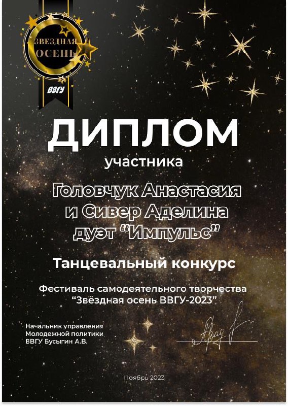 Звездная осень | конкурс | Внутривузовский | 23.11.2023 | Участник |