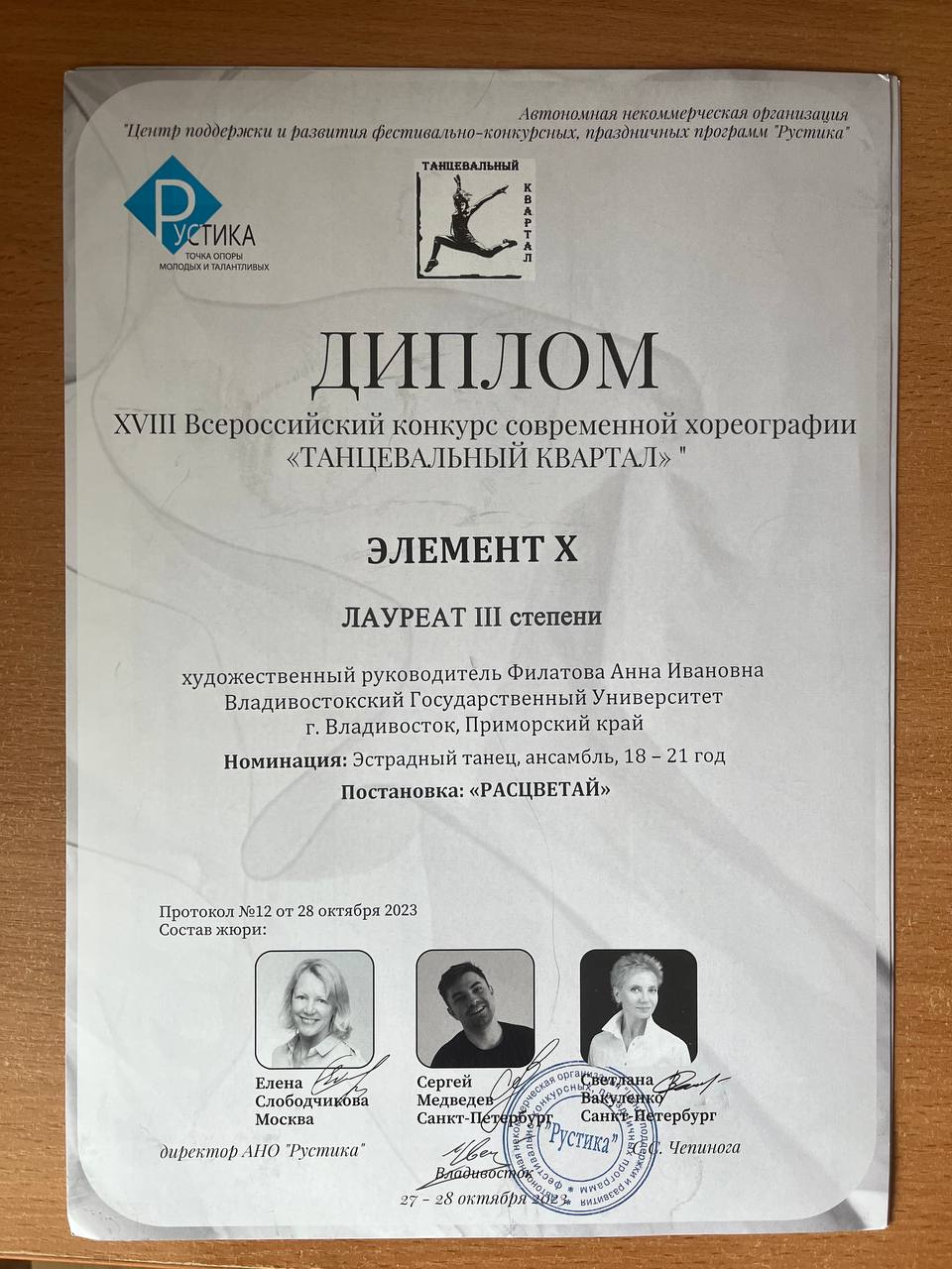Танцевальный квартал | конкурс | Всероссийский | 29.10.2023 | 3 место |