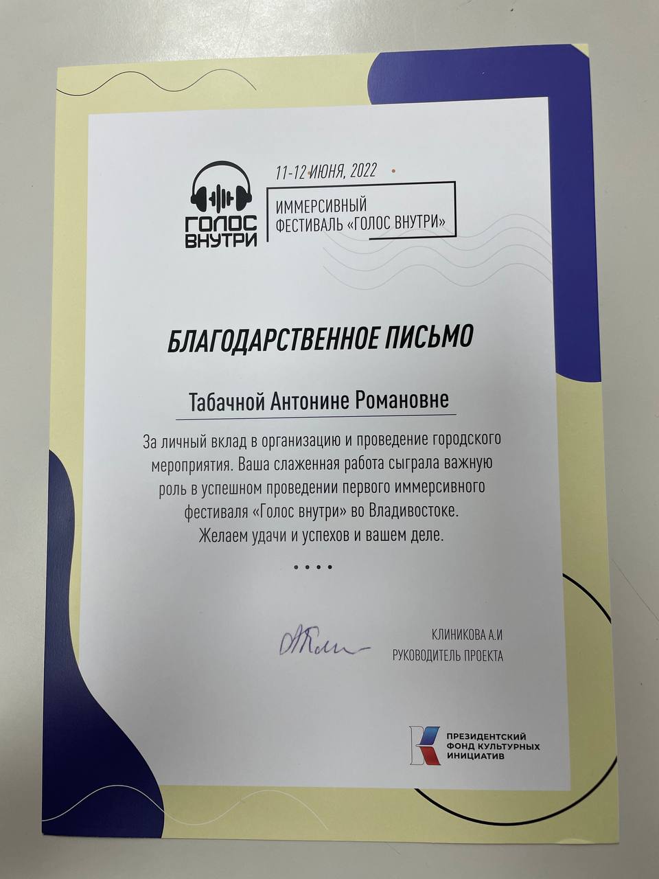 Иммерсивный фестиваль "Голос Внутри" | Волонтерство | Городской, краевой | 11.06.2022 - 12.06.2022 | Участник |