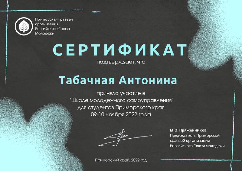 "Школа молодежного самоуправления" | Городской, краевой | 09.11.2022 - 10.11.2022 |