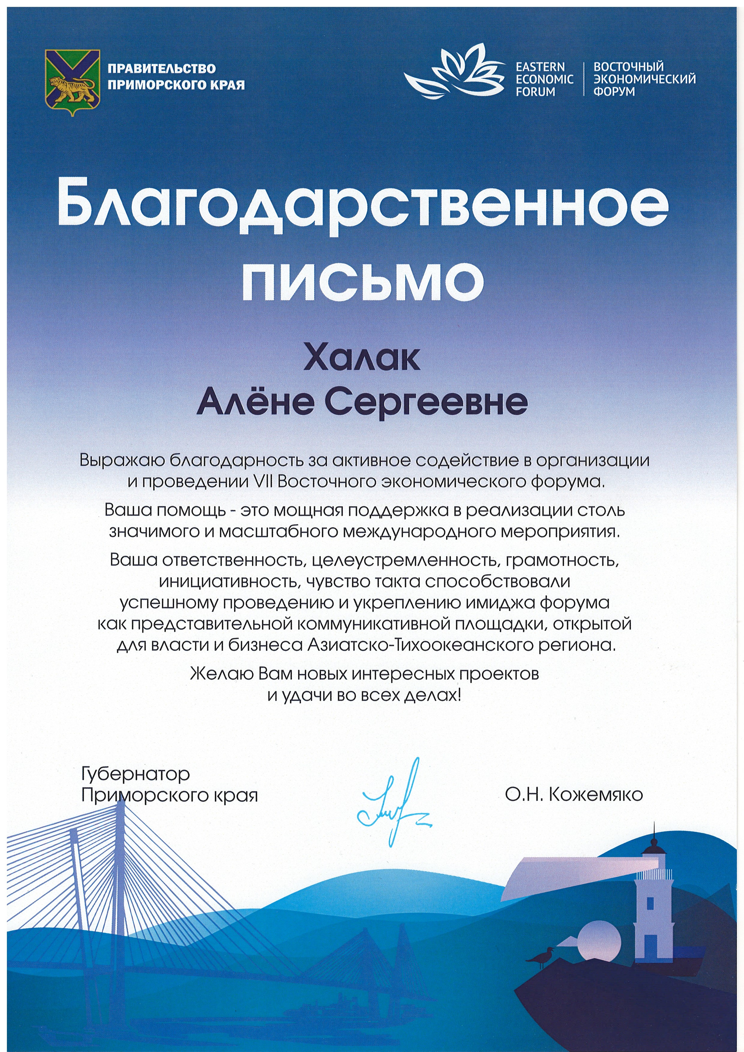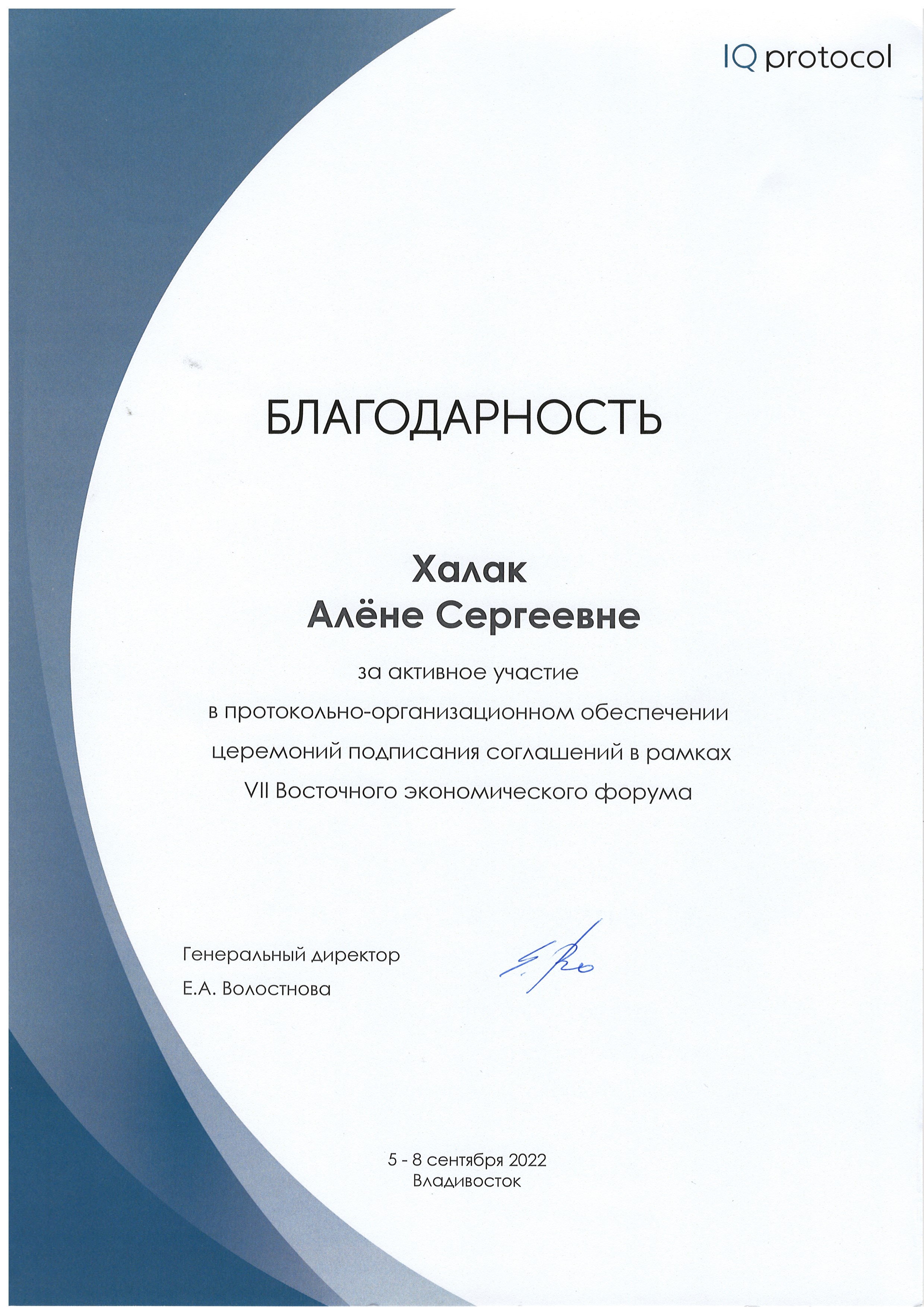 7 Восточный экономический форум | Международный | 05.09.2022 - 08.09.2022 | волонтер Протокольно-организационное обеспечение церемоний подписания соглашений |