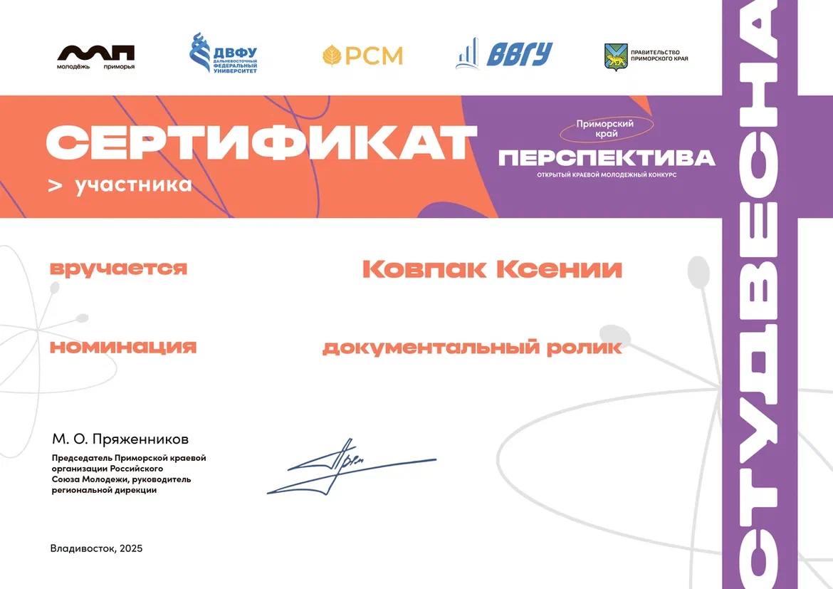 Перспектива - открытый краевой конкурс, номинация документальный ролик | Городской, краевой | 03.04.2025 - 03.04.2025 |
