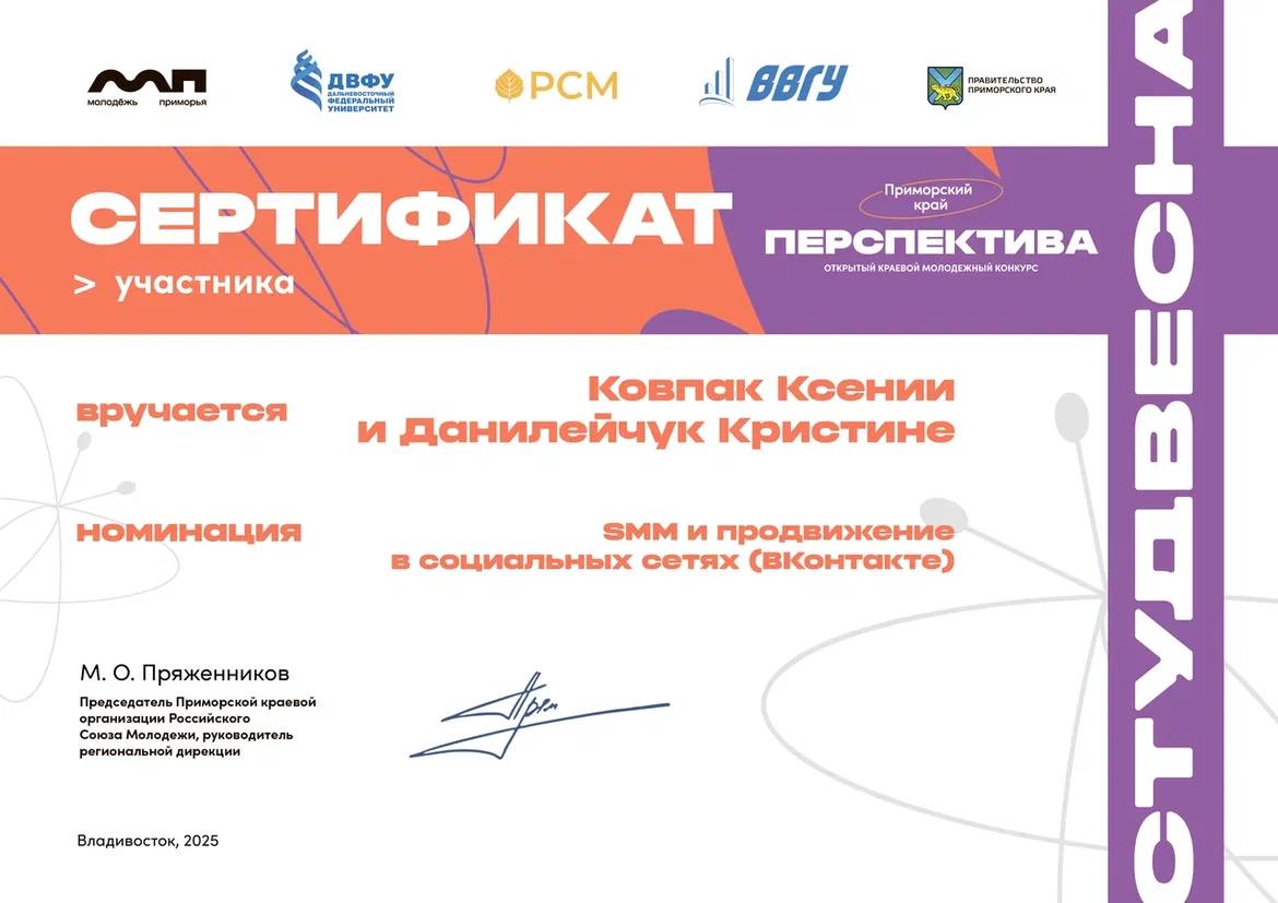 Перспектива - открытый краевой конкурс, номинация СММ | Городской, краевой | 03.04.2025 - 03.04.2025 | Участник |
