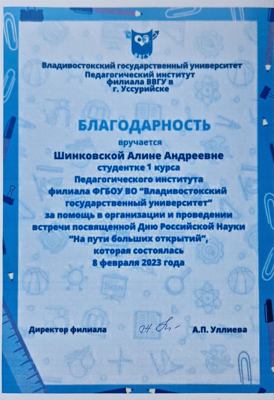 "На пути больших открытий" | Внутривузовский | 08.02.2023 - 08.02.2023 | Участник |