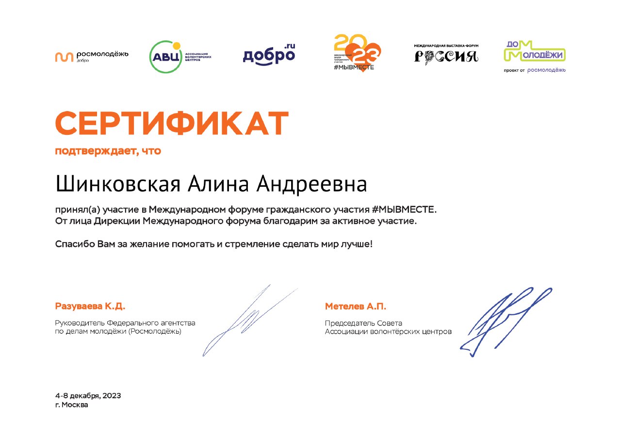 #МЫВМЕСТЕ | Международный | 04.12.2023 - 08.12.2023 | Участник |