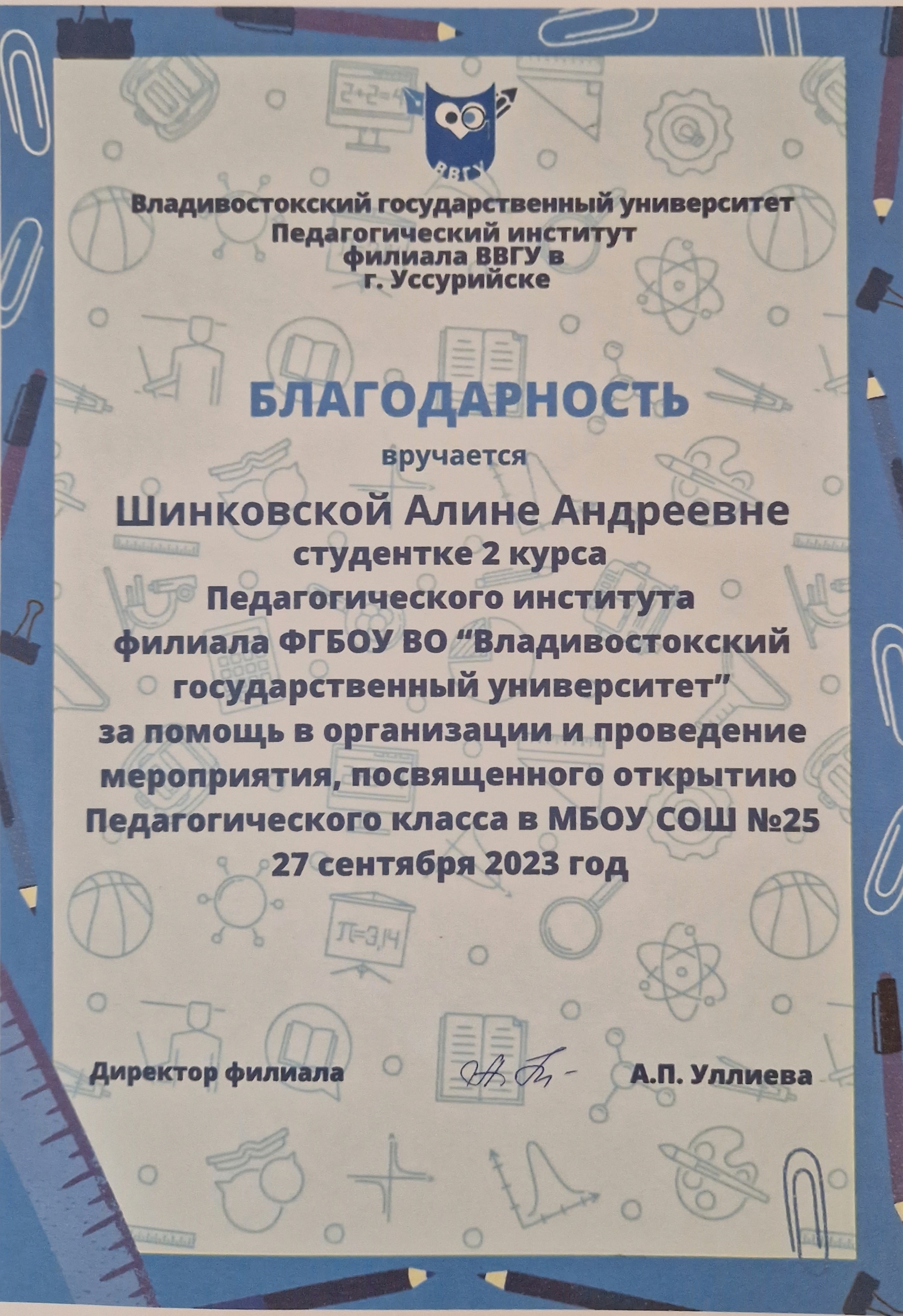 Открытие педагогического класса | Внутривузовский | 27.09.2023 - 27.09.2023 | Участник |