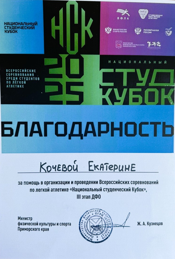 Национальный студенческий кубок по лёгкой атлетике. Окружной этап | Всероссийский | 20.03.2025 | Участник |