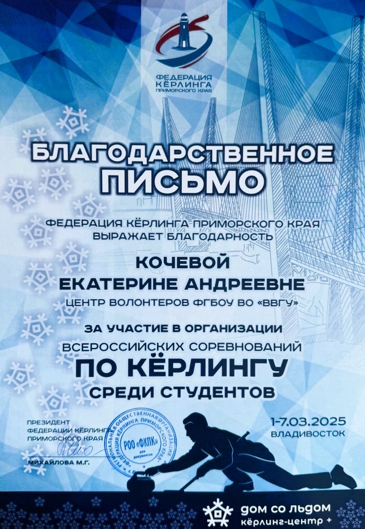 Всероссийские соревнования по кёрлингу среди студентов | Всероссийский | 02.03.2025 - 06.03.2025 | Участник |