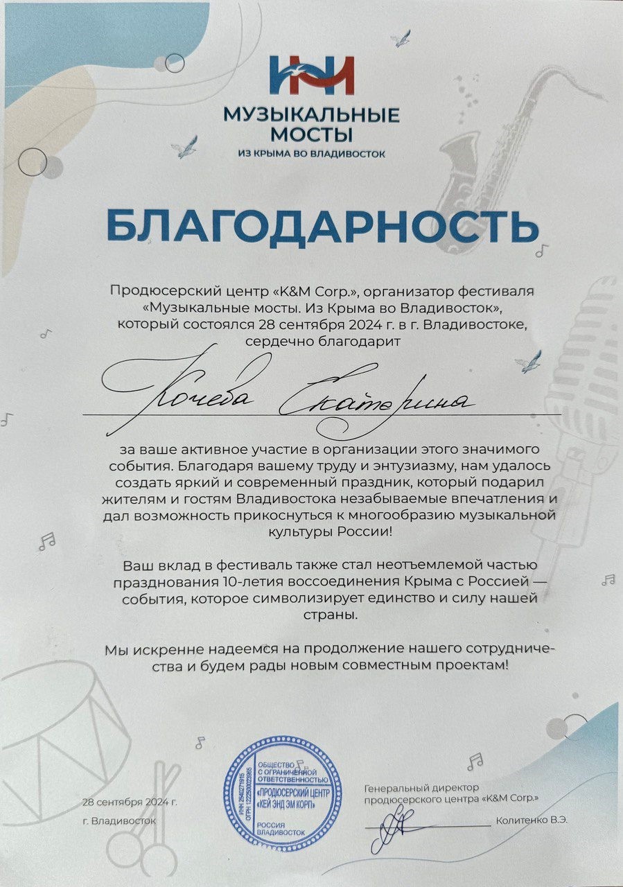 ЛАВ-вечер(Музыкальные мосты. Из Крыма во Владиосток) | Городской, краевой | 28.09.2024 | Участник |