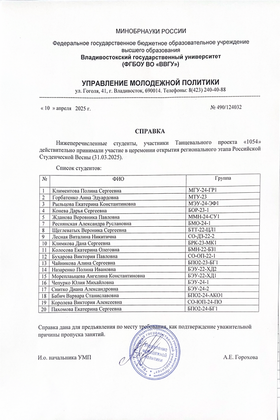 Мисс и Мистер ВВГУ | Концертная программа | Внутривузовский | 21.03.2025 | Участник |