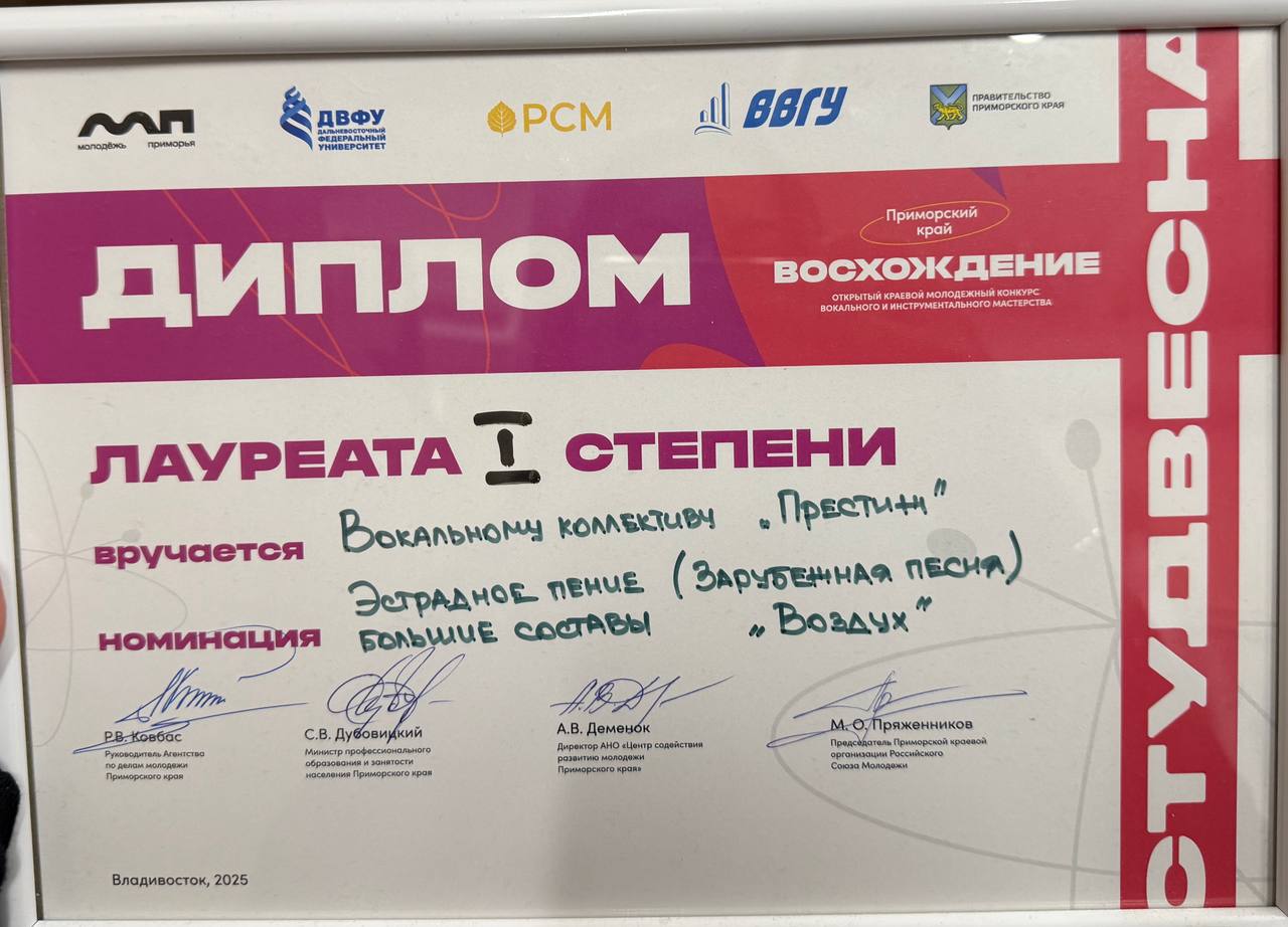 Конкурс вокального и инструментального мастерства "Восхождение" | Конкурс | Региональный | 31.03.2025 | 1 место или гран-при |