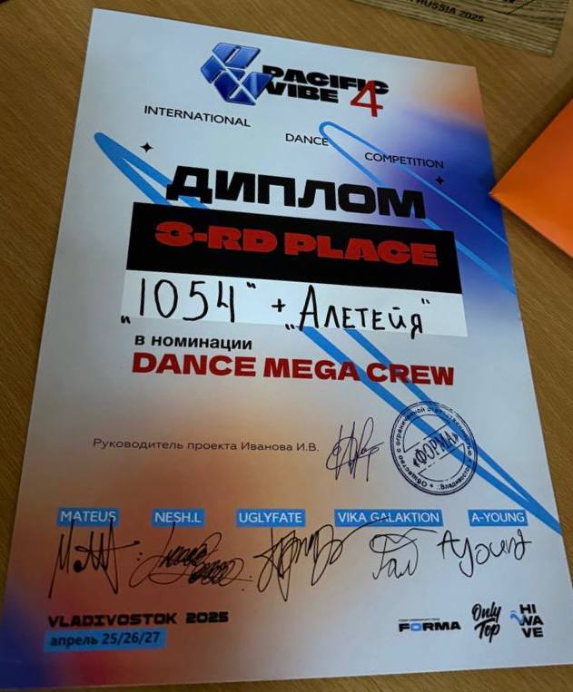 Конкурс хореографии "PACIFIC VIBE 4" | Конкурс | Международный | 26.04.2025 | 3 место |
