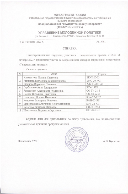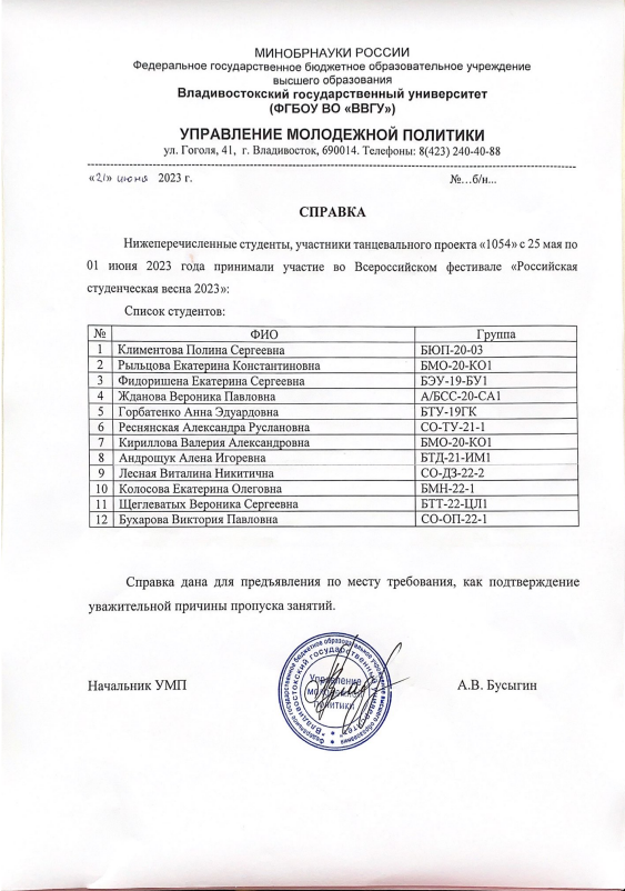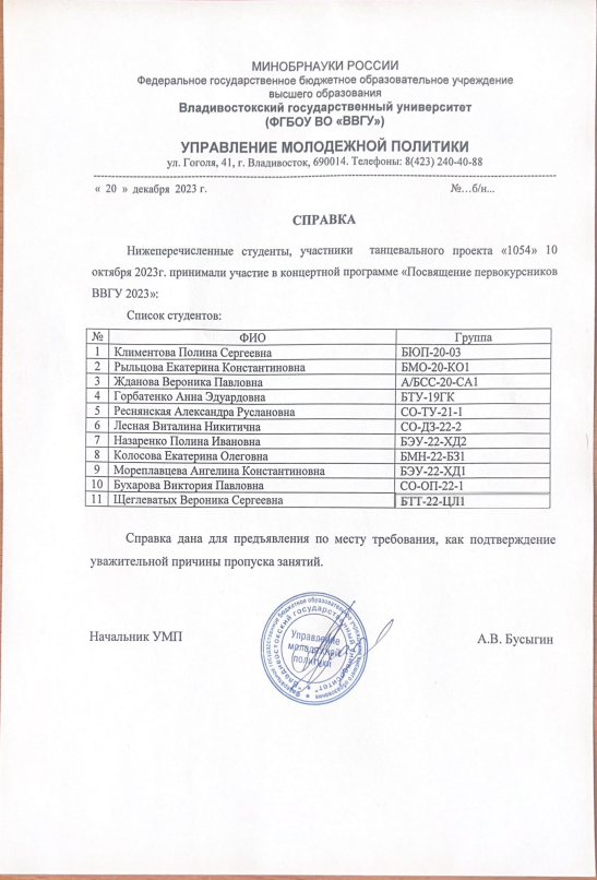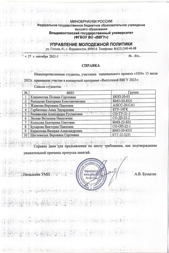 — Подтверждено ВВГУ |