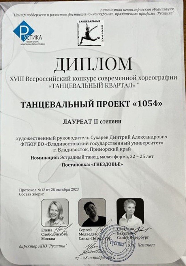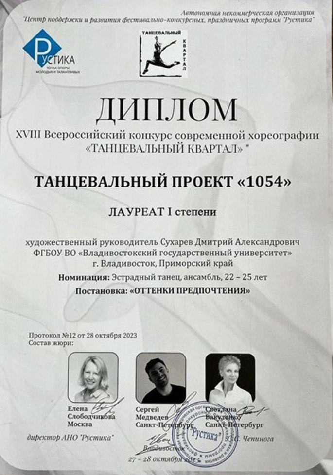 Всероссийский конкурс современной хореографии "Танцевальный квартал" | Конкурс | Всероссийский | 28.10.2023 | 1 место или гран-при |