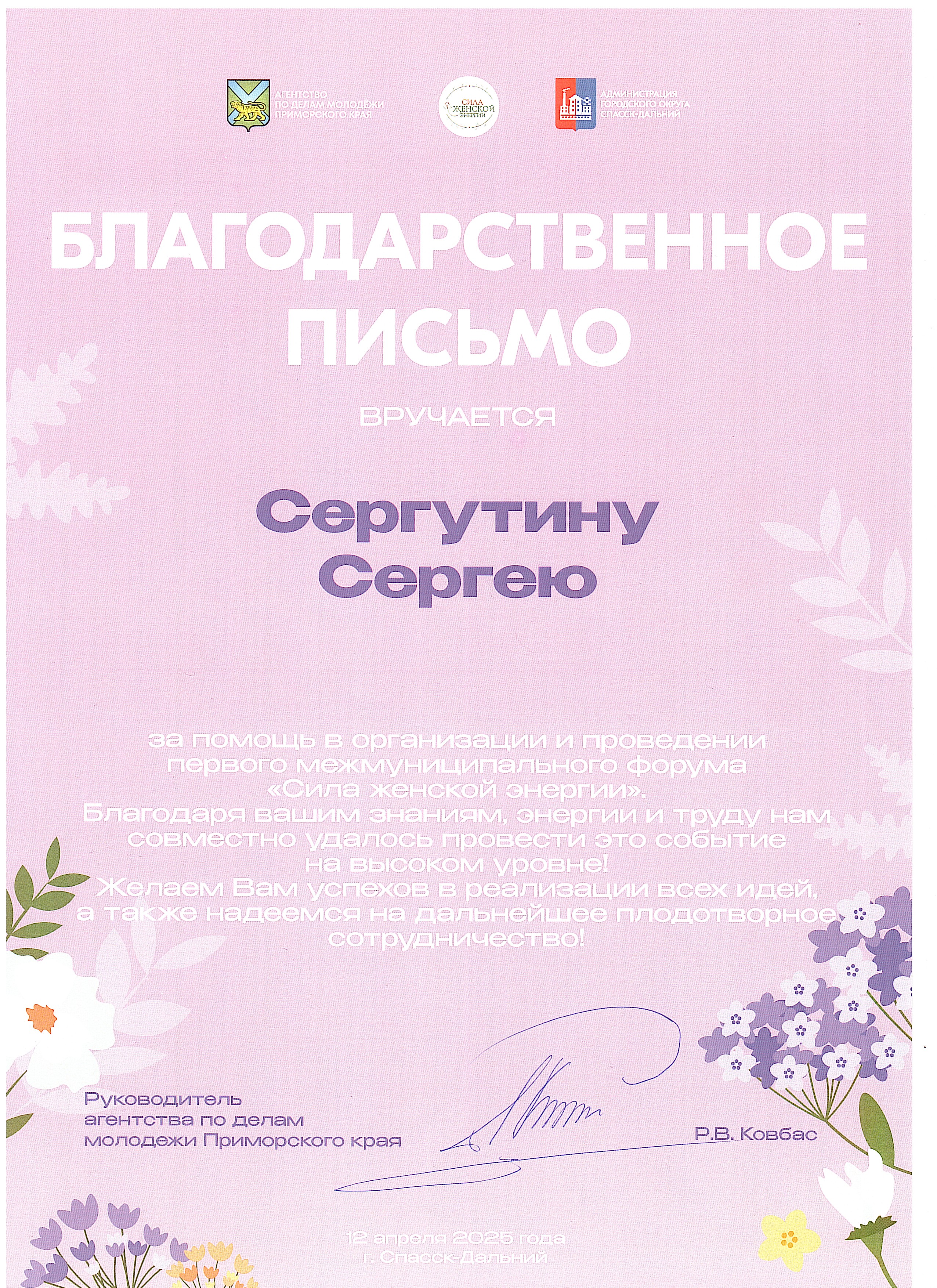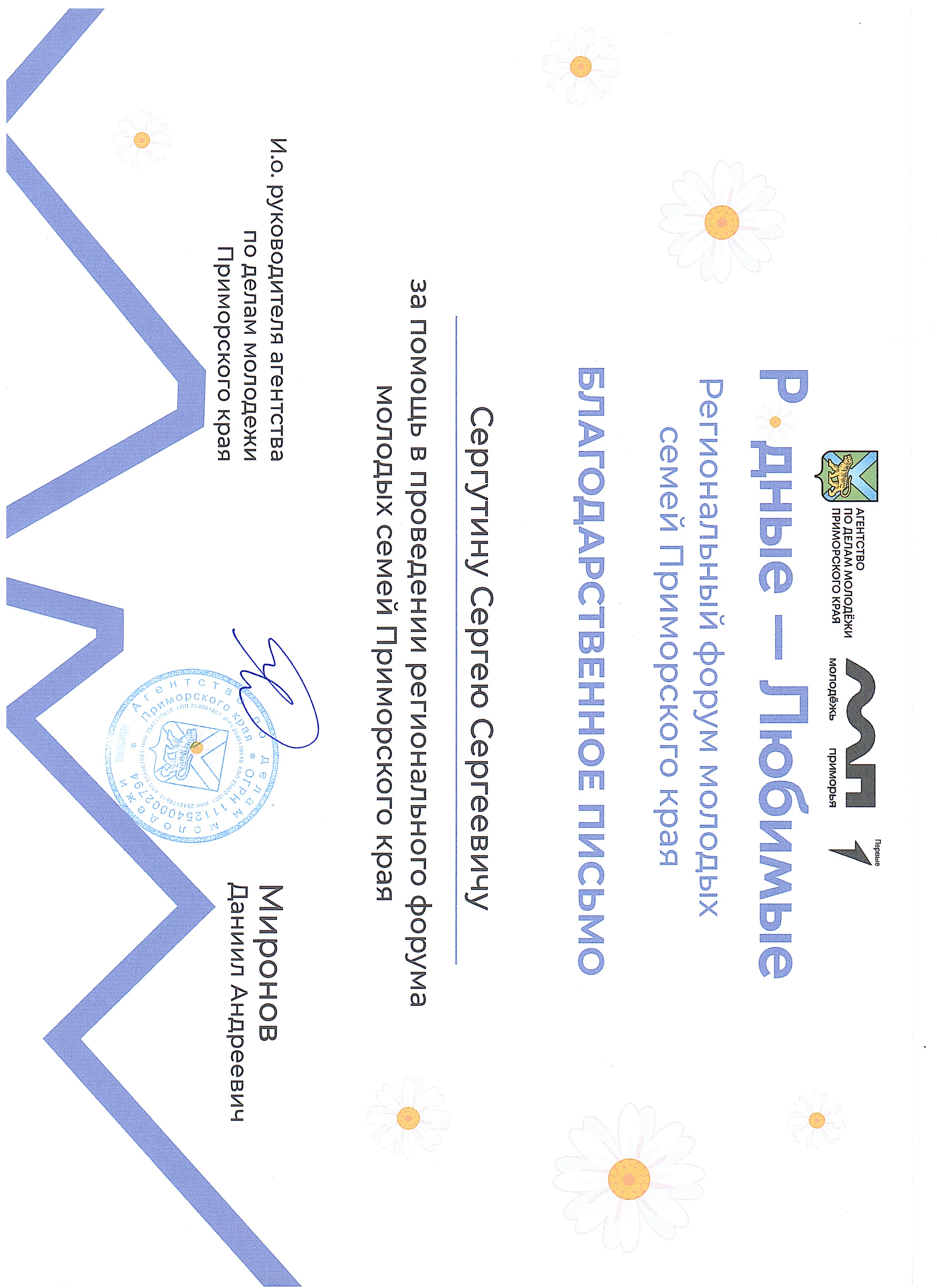 Региональный форум молодых семей Приморского края "Родные - Любимые" | Региональный | 29.11.2024 - 01.12.2024 | Диплом |