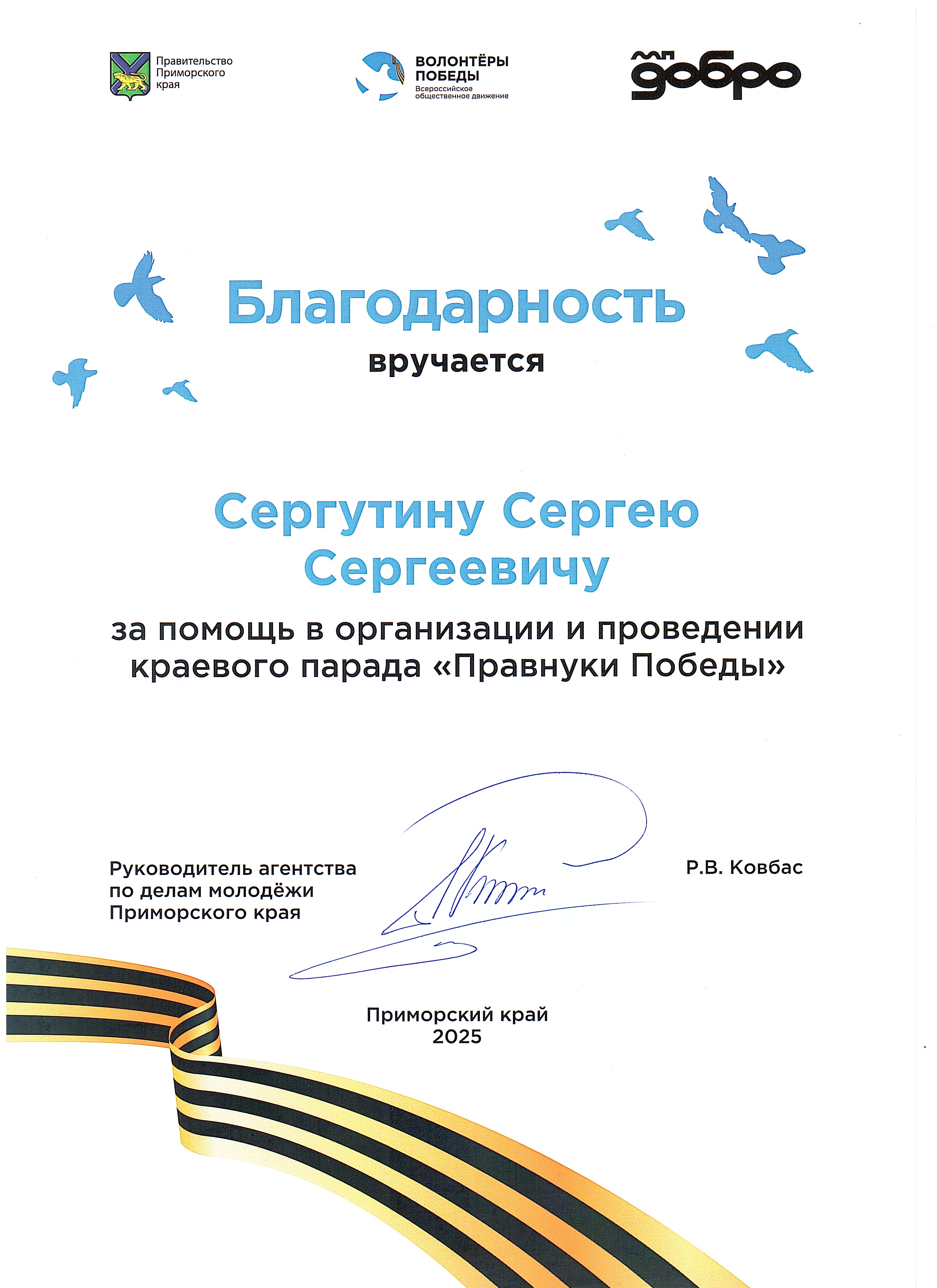 Форум волонтеров Приморского края "Море Добра" | Региональный | 25.11.2024 - 29.11.2024 | Диплом |