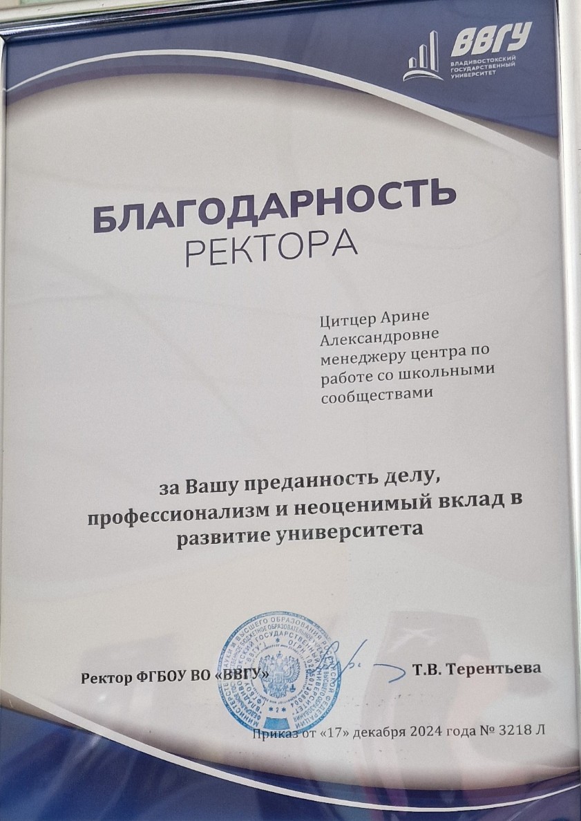 Благодарность ректора