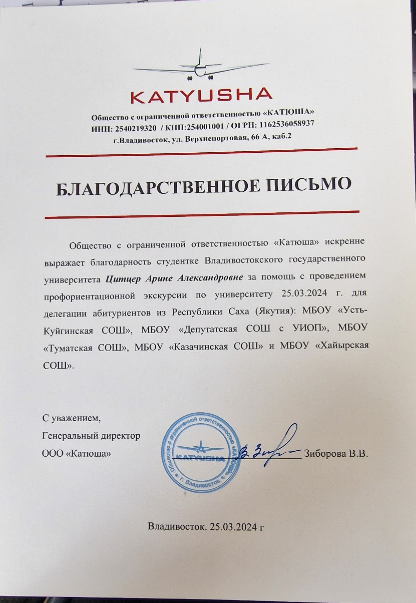 Благодарственное письмо