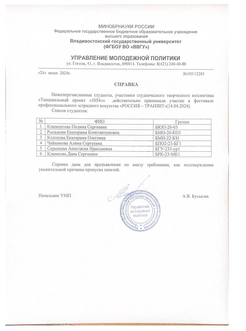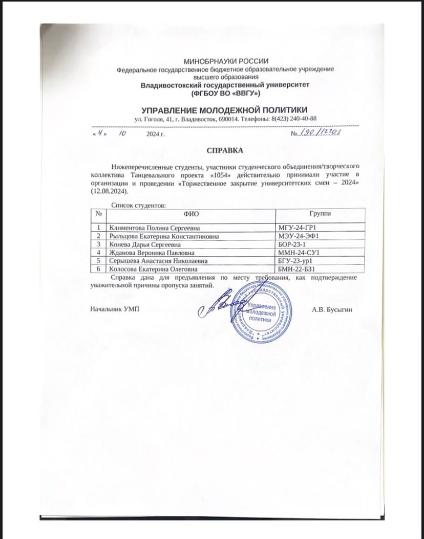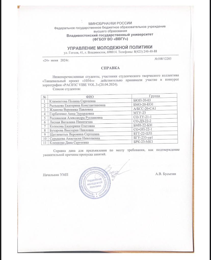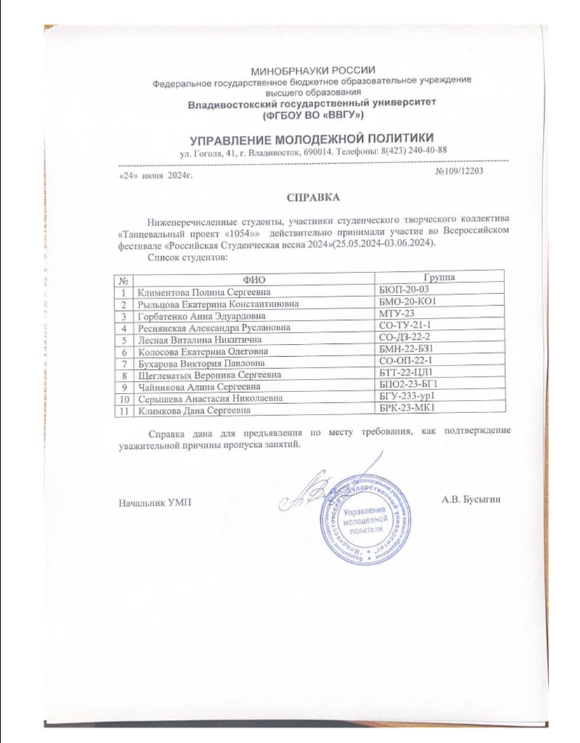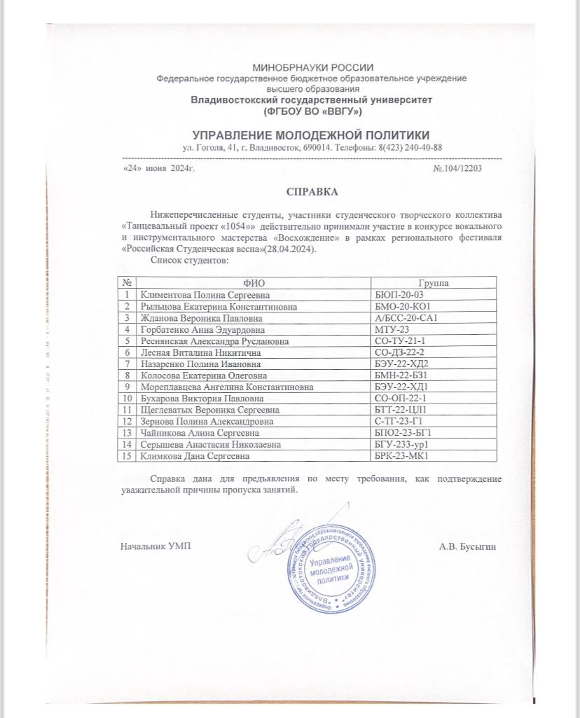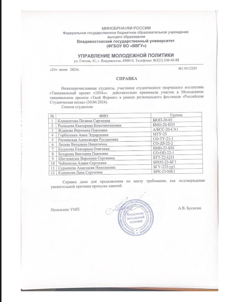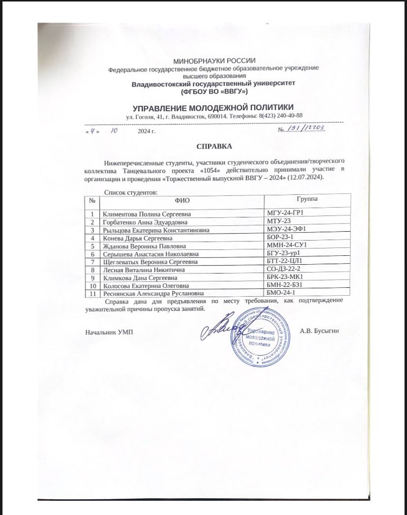 "Торжественный выпускной ВВГУ - 2024" | Внутривузовский | 12.07.2024 | Участник |