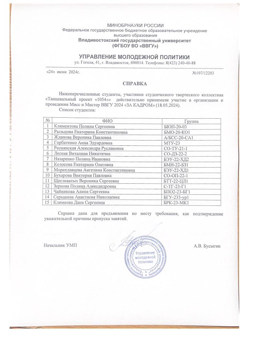 "Мисс и Мистер ВВГУ 2024 "ЗА КАДРОМ"" | Внутривузовский | 18.05.2024 | Участник |