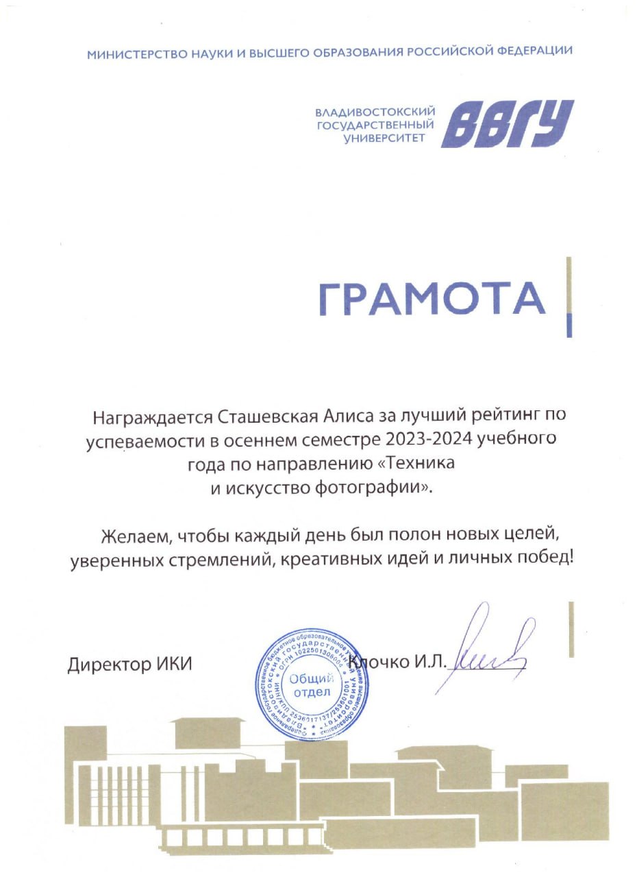 Рейтинг успеваемости осеннего семестра 2023-2024 года | Внутривузовский | 01.09.2023 - 28.12.2023 |
