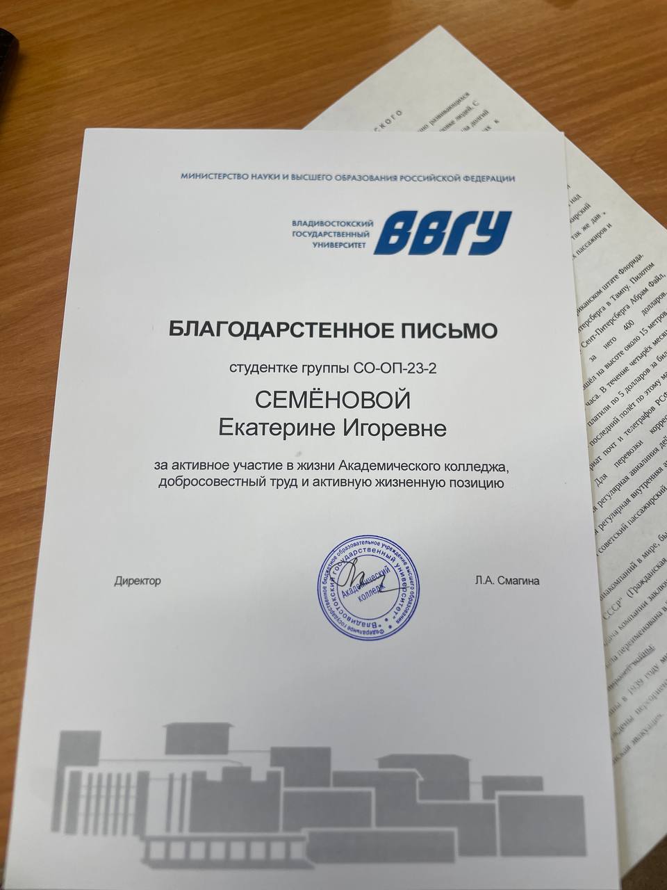 Благодарственное письмо