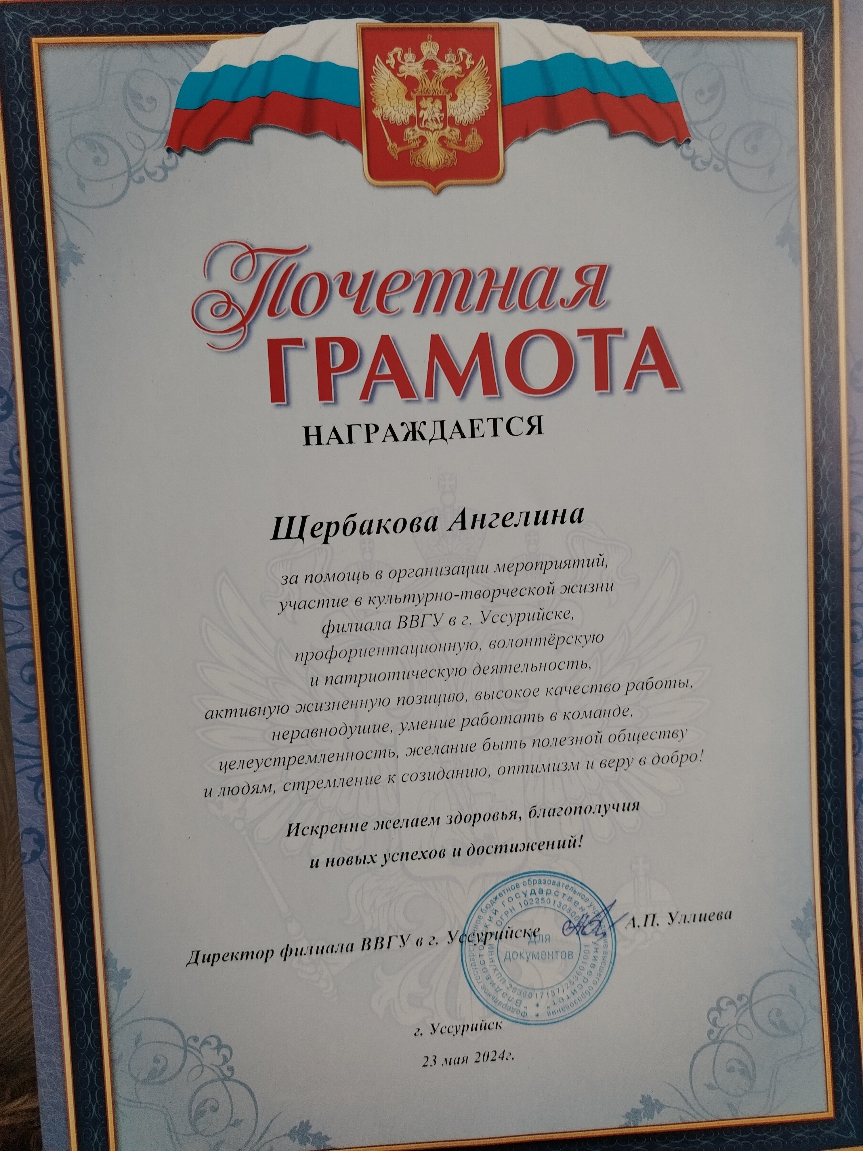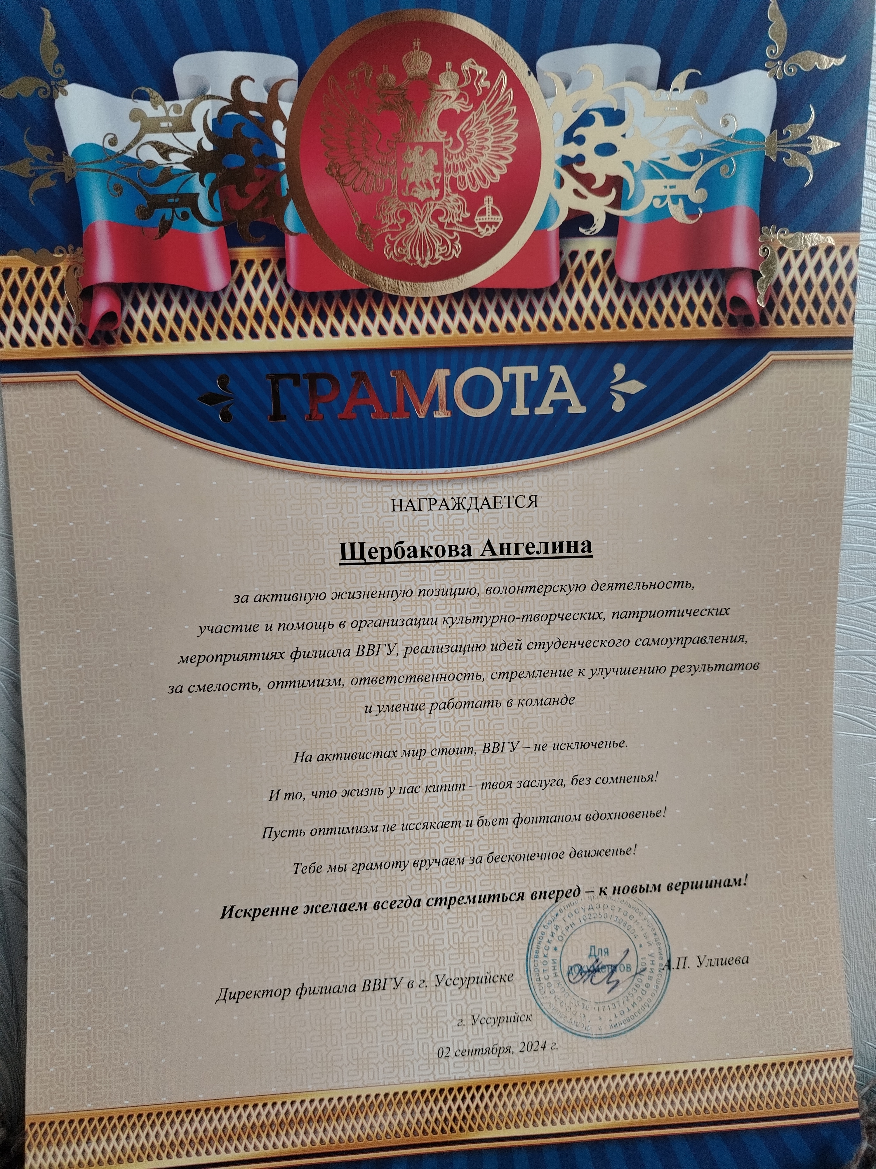 За активную жизненную позицию в колледже | 02.09.2024 |