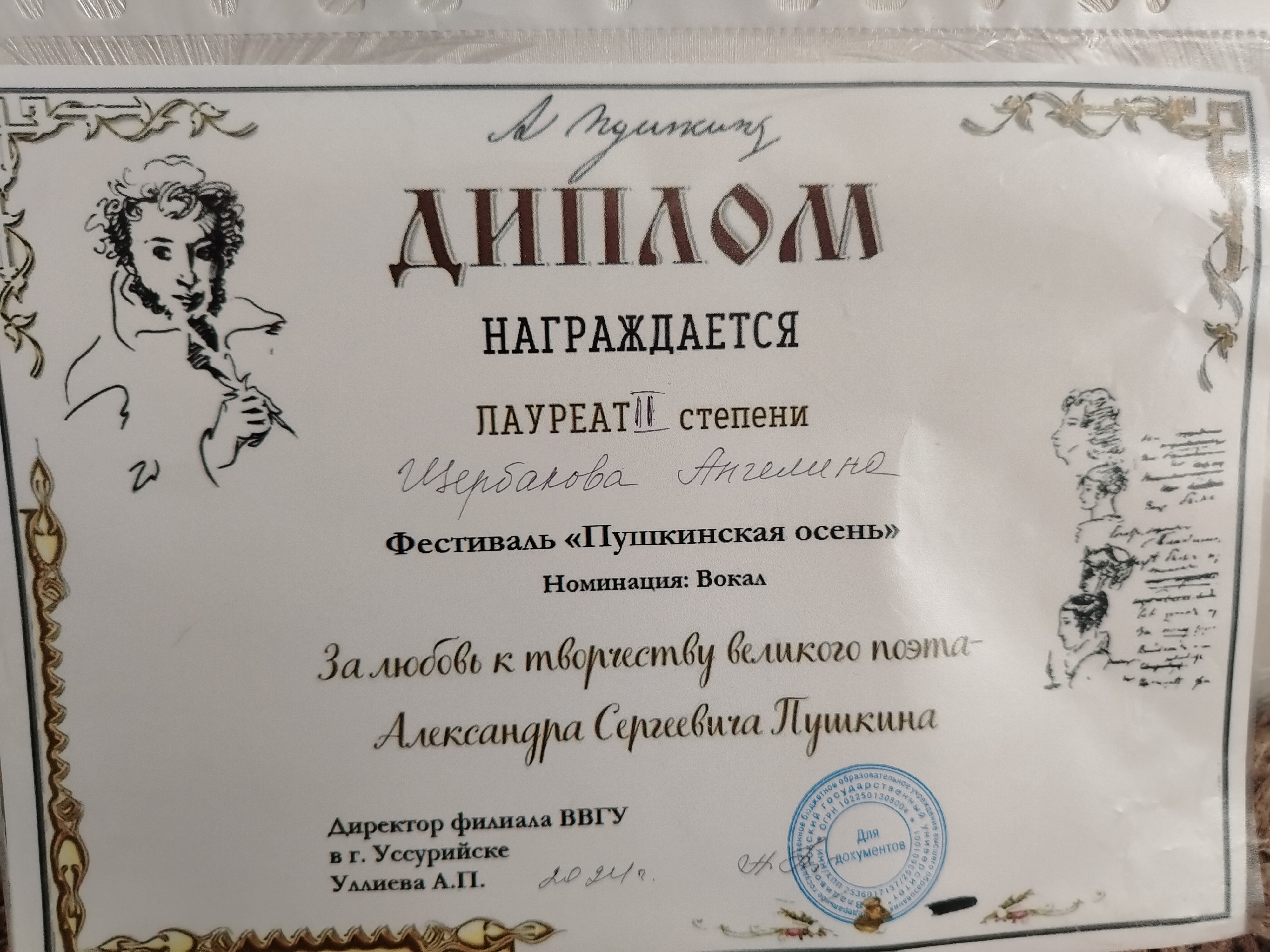 Фестиваль "Пушкинская осень" | Внутривузовский | 05.12.2024 | 2 место |