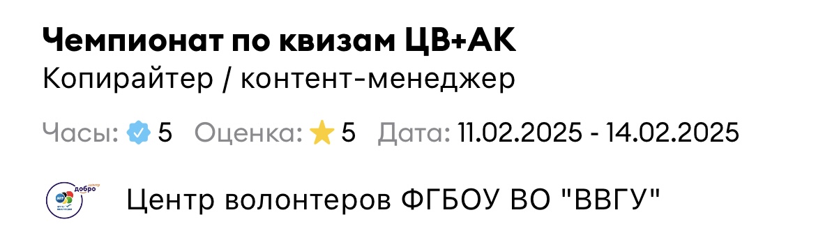Чемпионат по квизам ЦВ+АК | Внутривузовский | 11.02.2025 - 14.02.2025 | Копирайтер/ контент-менеджер |